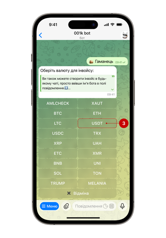 Якщо ви ще не користувалися ботом раніше, але хочете оплатити інвойс з його допомогою, виконайте наступні кроки: