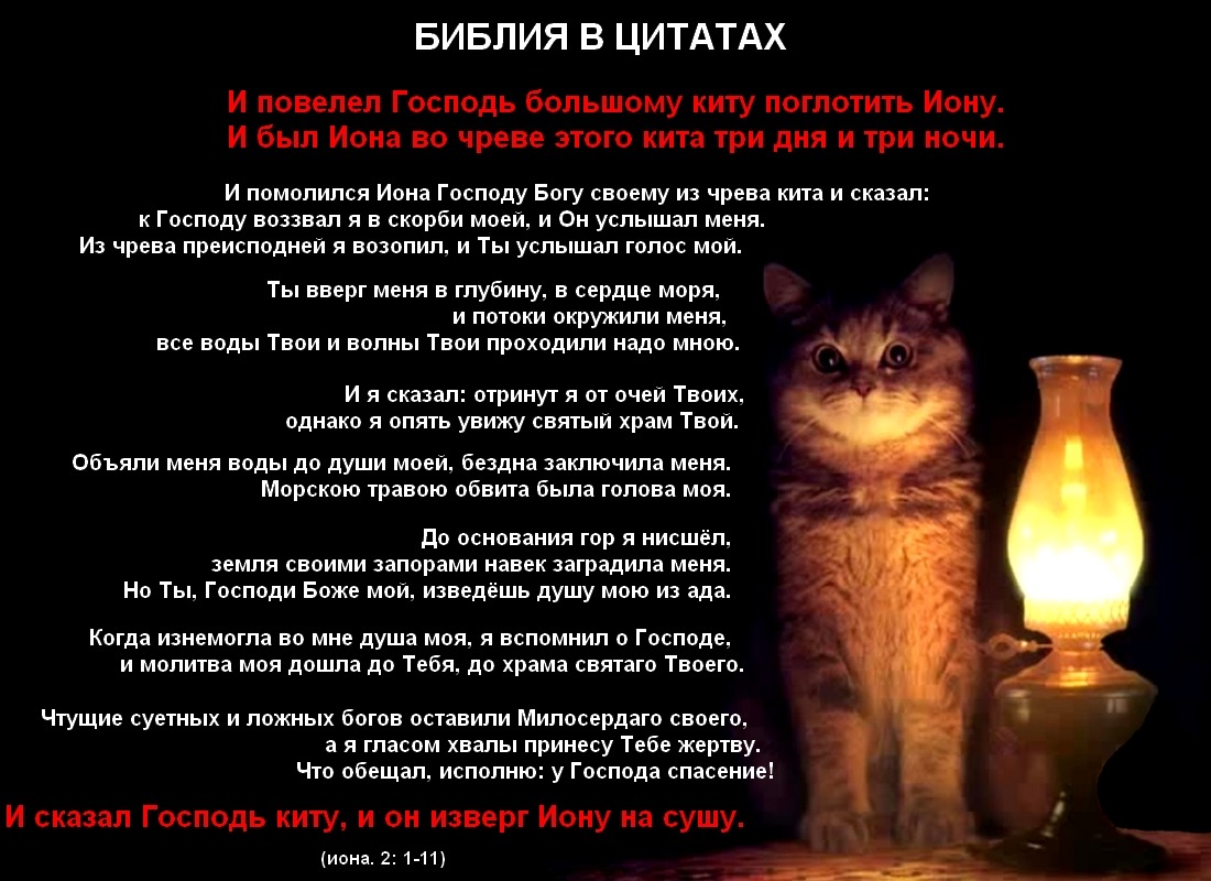 1 И повелел Господь большому киту поглотить Иону; и был Иона во чреве этого кита три дня и три ночи.