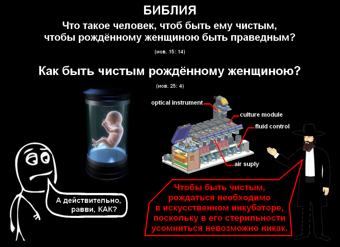 В пятнадцатой главе уже не Иов, а один из его приятелей задаёт ему вопрос, обращающий на себя внимание своей провокационной формулировкой: "что такое человек, чтоб ему, рождённому женщиною, быть праведным?". Воспринимая присутствующий в ней сексизм как нечто вполне допустимое и даже совершенно естественное, авторы значения ему не придают. Также не видит в нём ничего ненормального и Иов. В двадцать пятой главе аналогичный вопрос "как быть чистым рождённому женщиною?" ему задаёт другой его приятель. Бог, в их споре участия хоть и не принимающий, однако внимательно за ним следящий, в дальнейшем критически его комментирует, но сексистские формулировки вопросов он не осуждает. Впрочем, поскольку из истории про Эдемский сад читатели знают, что, согласно позиции авторов, разделяемой, конечно же, и выдуманным ими богом, женщина является не человеком, а лишь его помощником, то наличие в тексте сексистских вопросов, как и отсутствие адекватной реакции на них, сильно удивлять их не должно.
