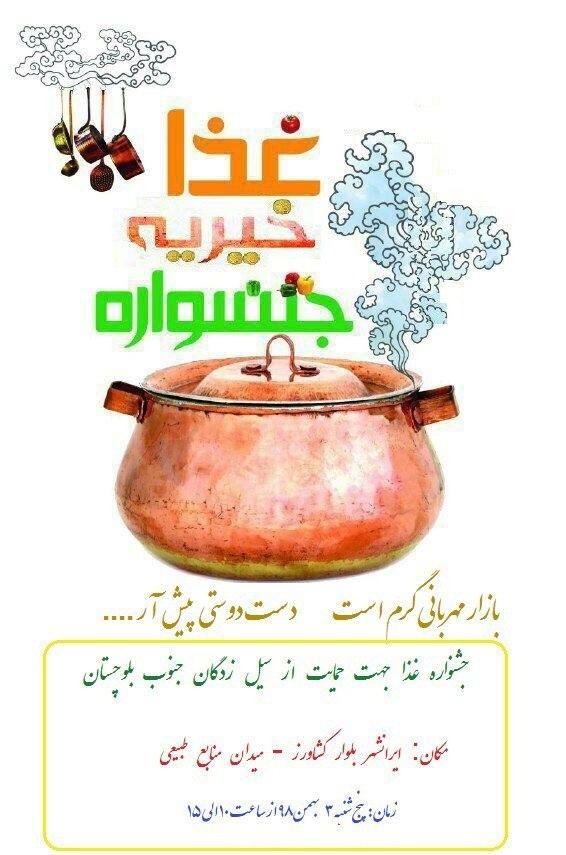 برپایی جشنوارهی غذاهای بومی- محلّی در ایرانشهر بهنفع سیلزدگان بلوچ توسط جماعت