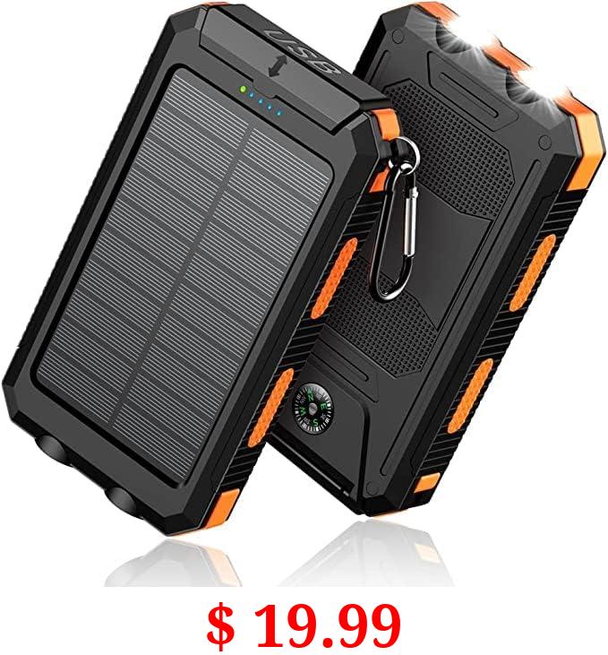 $ 19.99 Feeke Solar-Charger-Power-Bank - 36800mAh Portable Charger,QC3.0 Fast Charger Dual USB Port Built-in Led Flashlight and Compass for All Cell Phone and Electronic Devices(Deep Orange)