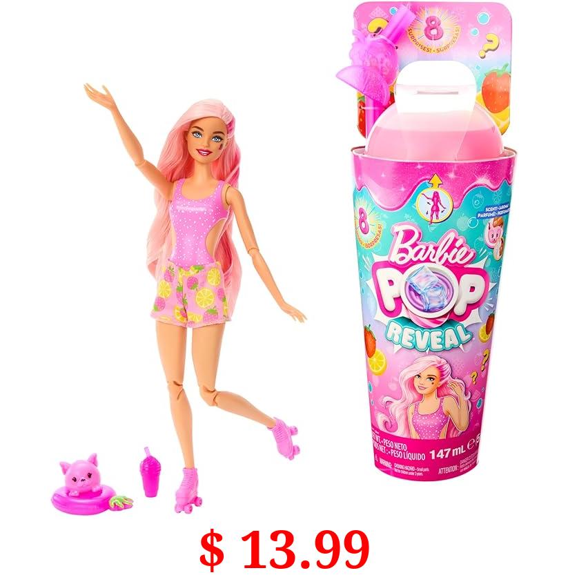 $ 13.99 Barbie Pop Reveal Doll & Accessories, Strawberry Lemonade Scent with Pink Hair, 8 Surprises Include Slime & Squishy Puppy