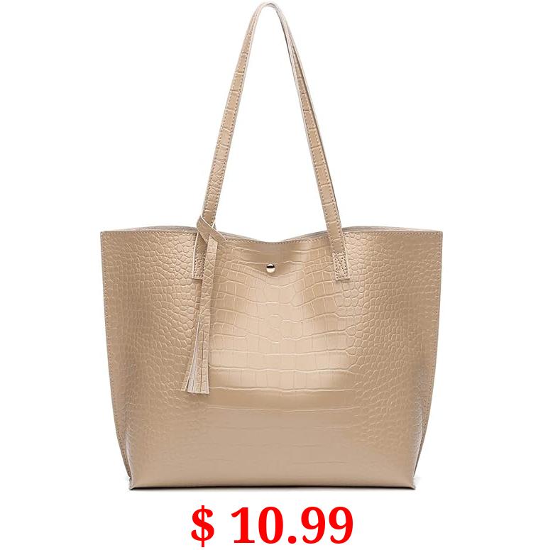$ 10.99 Dreubea Women's Soft Faux Leather Tote Shoulder Bag from, Big Capacity Tassel Handbag