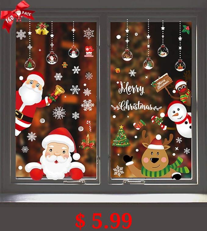 $ 5.99 Vanleonet Christmas Window Stickers Clings,160Pcs Double-Side Removable Christmas Window Decal Stickers for Christmas Decorations Window Decorations Ornaments Party Supplies Refrigerator Decor