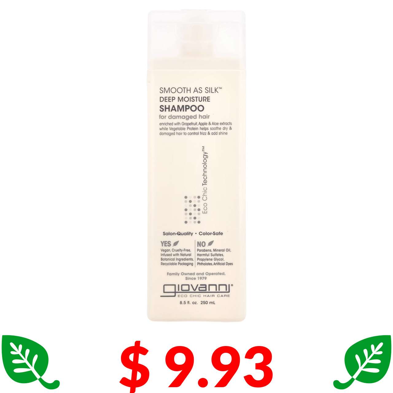 $ 9.93 Giovanni, Smooth As Silk, інтенсивно зволожувальний шампунь, для пошкодженого волосся, 250 мл (8.5 рідк. унції)
