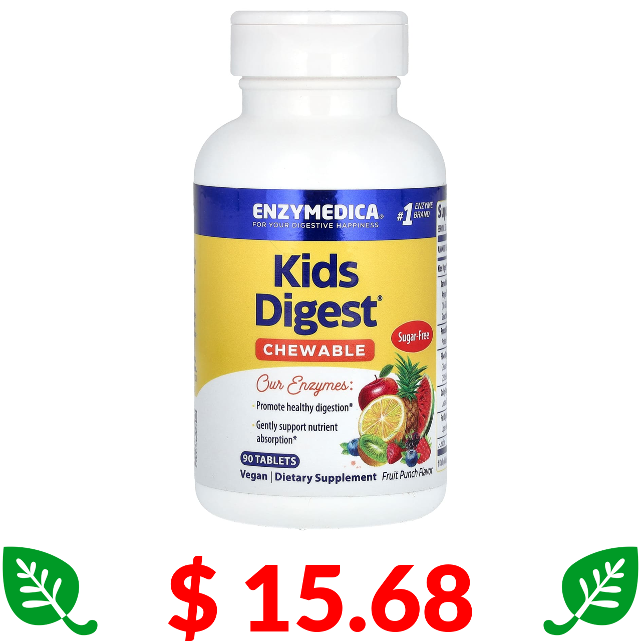$ 15.68 Enzymedica, Kids Digest, добавка для підтримки травлення, зі смаком фруктового пуншу, 90 таблеток