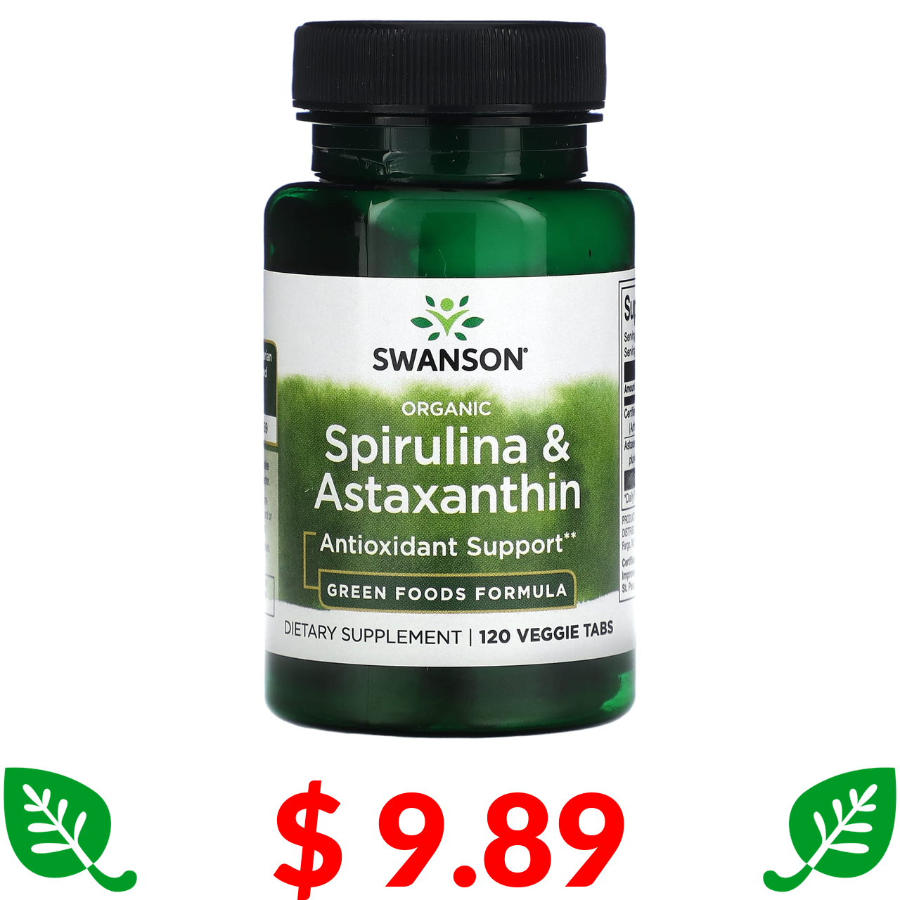 $ 9.89 Swanson, органічна спіруліна й астаксантин, 120 вегетаріанських таблеток