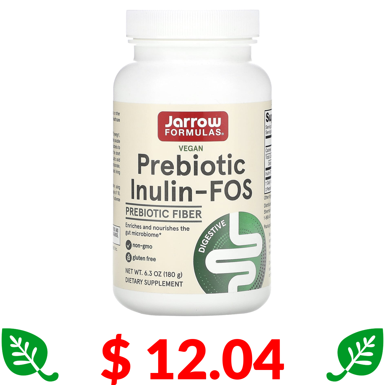 $ 12.04 Jarrow Formulas, пребіотики з інуліном і фруктоолігосахаридами, порошок, 180 г (6,3 унції)
