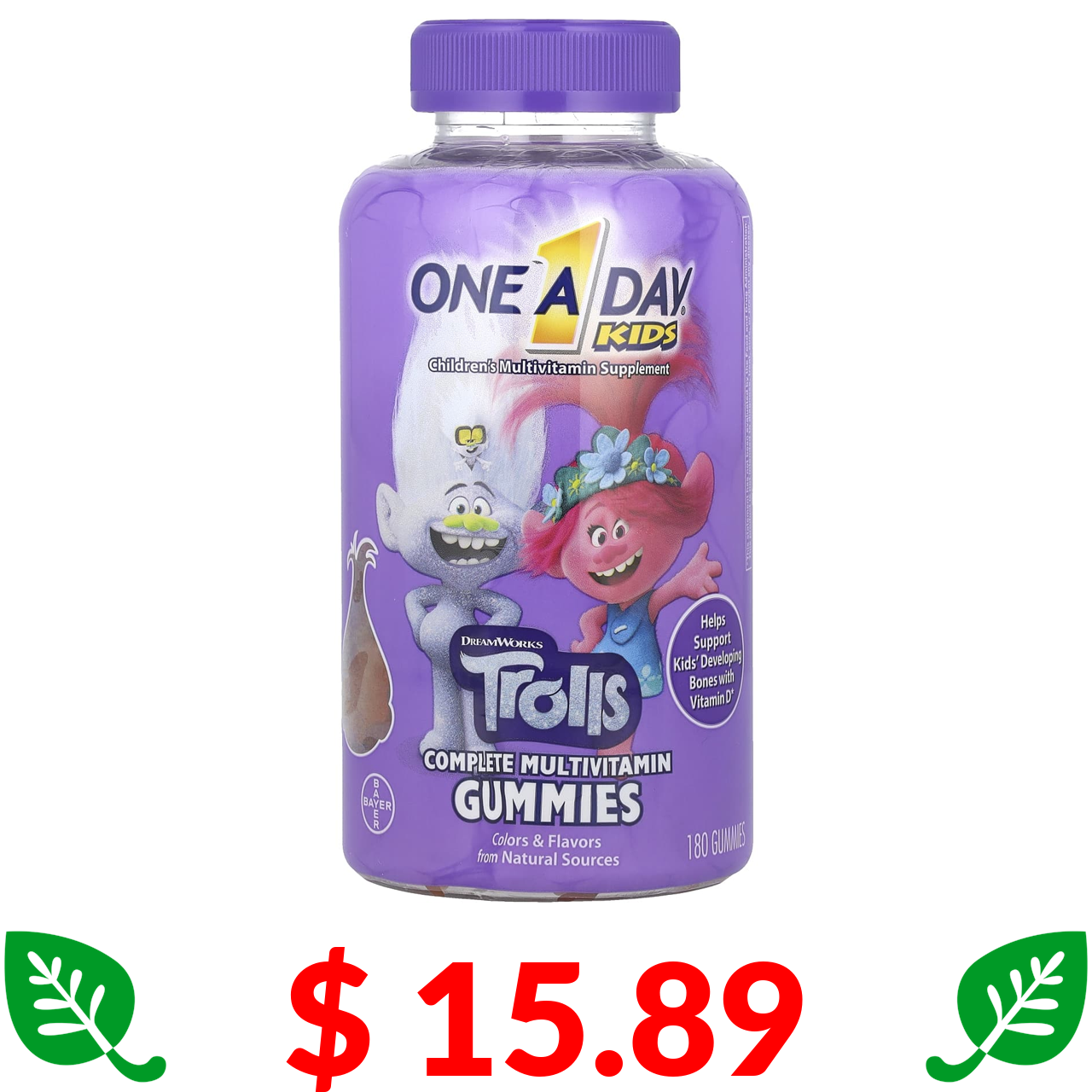 $ 15.89 One-A-Day, комплекс мультивітамінів для дітей, у формі тролів, 180 жувальних таблеток