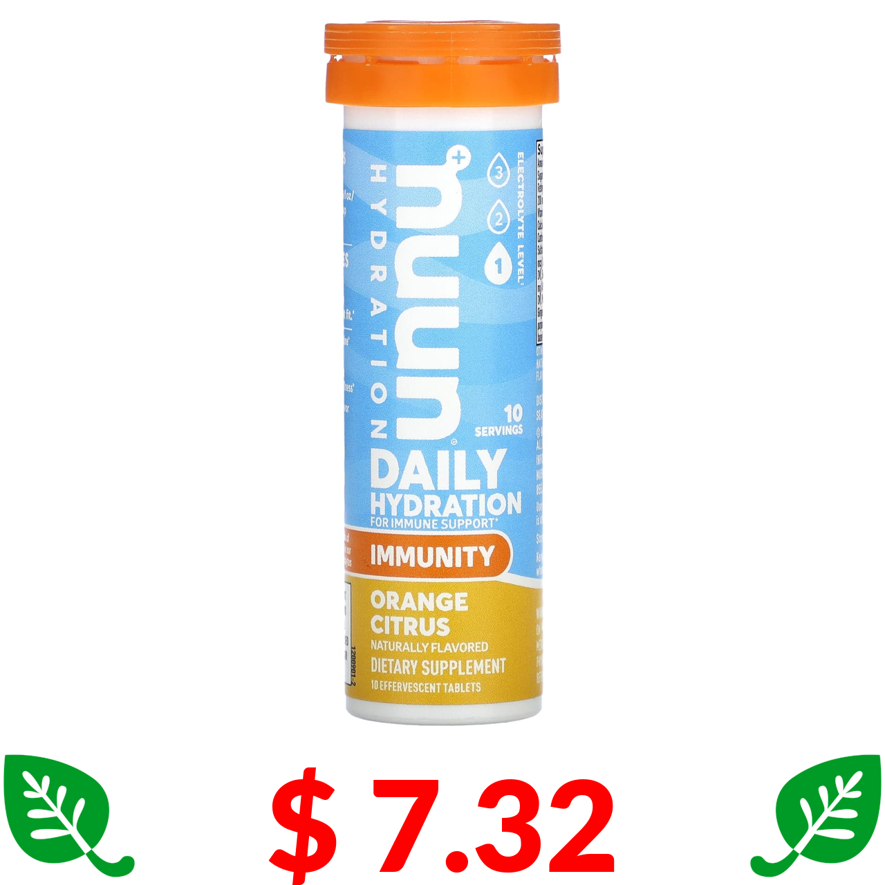 $ 7.32 Nuun, Daily Hydration, для підтримки імунітету, апельсин і цитрусові, 10 шипучих таблеток