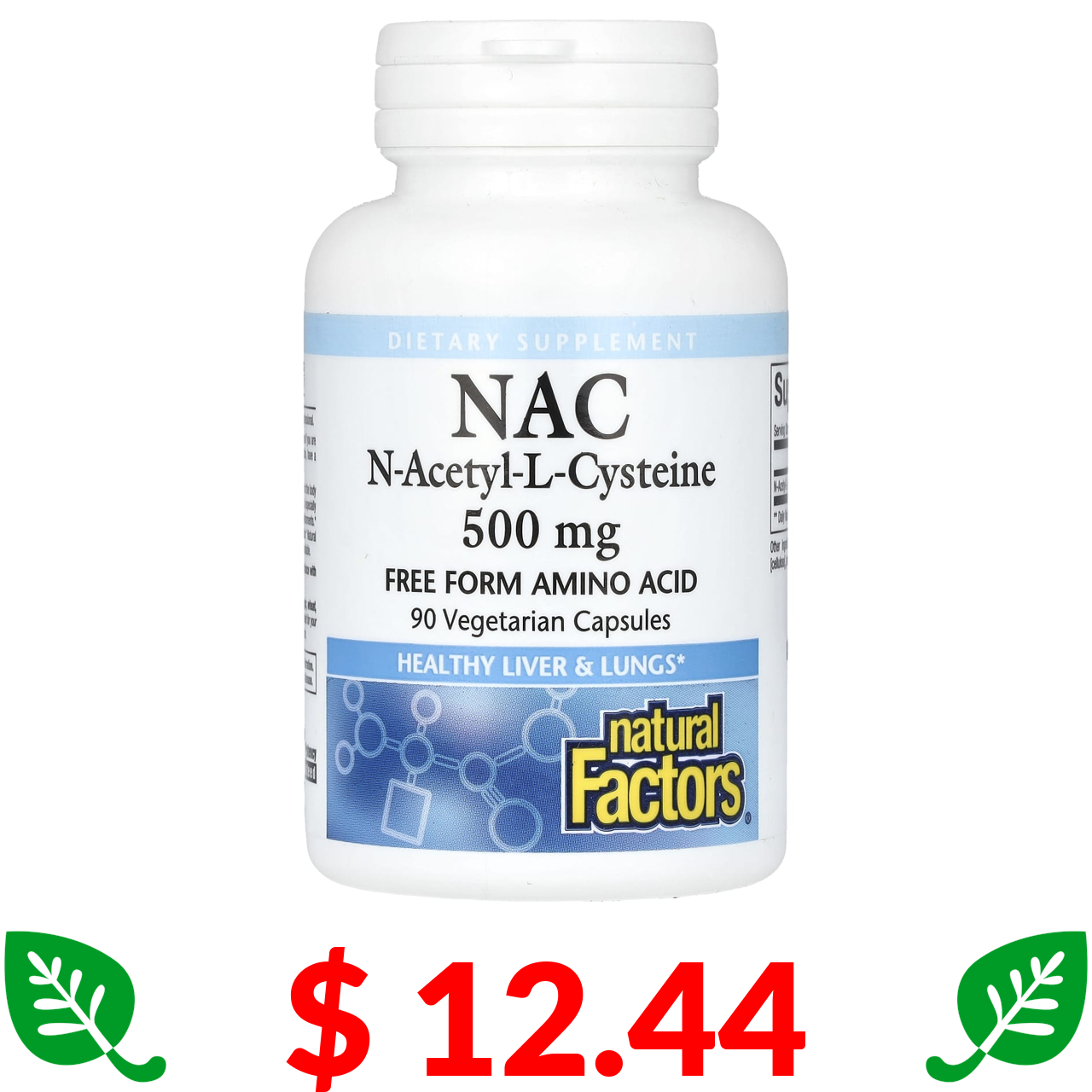 $ 12.44 Natural Factors, NAC N-ацетил-L цистеїн, 500 мг, 90 вегетаріанських капсул