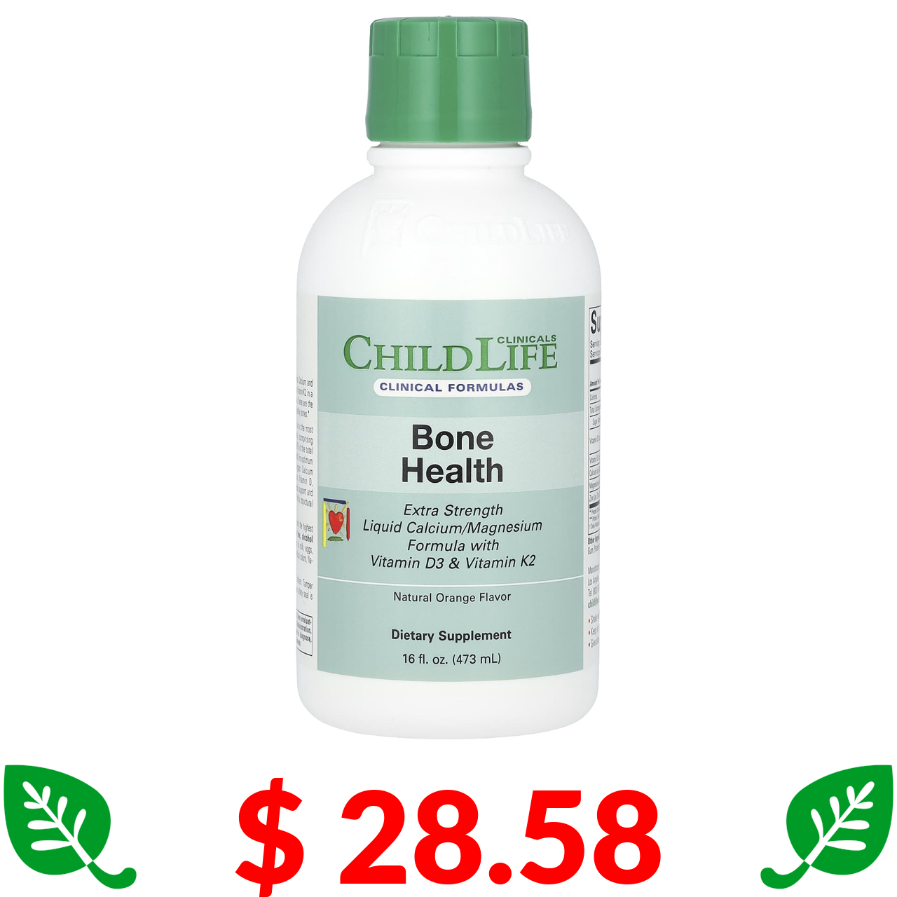 $ 28.58 Childlife Clinicals, рідка добавка з кальцієм, магнієм, вітамінами D3 та К2, посилена дія, натуральний апельсиновий смак, 473 мл (16 рідк. унцій)