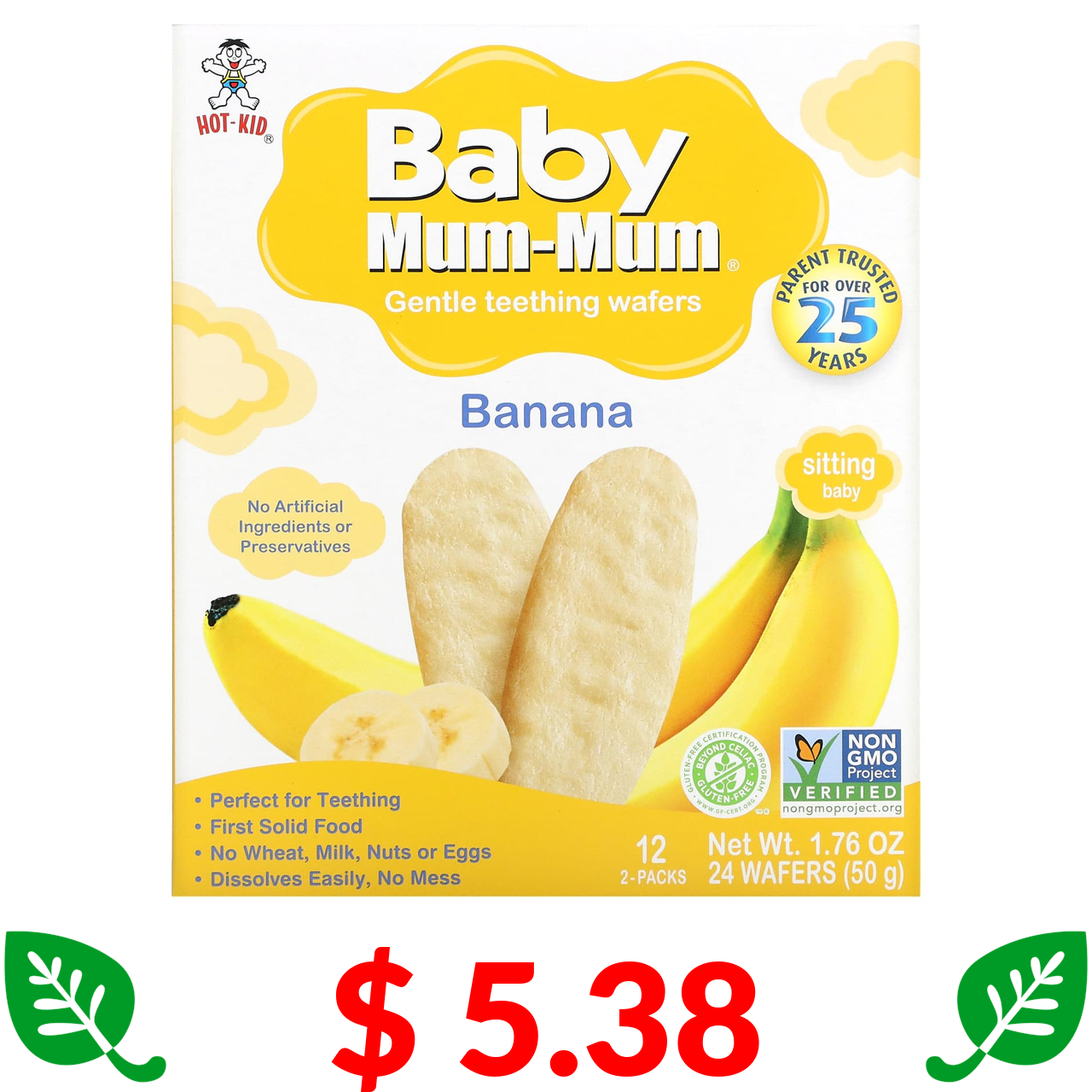 $ 5.38 Hot Kid, Baby Mum-Mum, рисові галети з бананом, 24 галети, 50 г (1,76 унції)