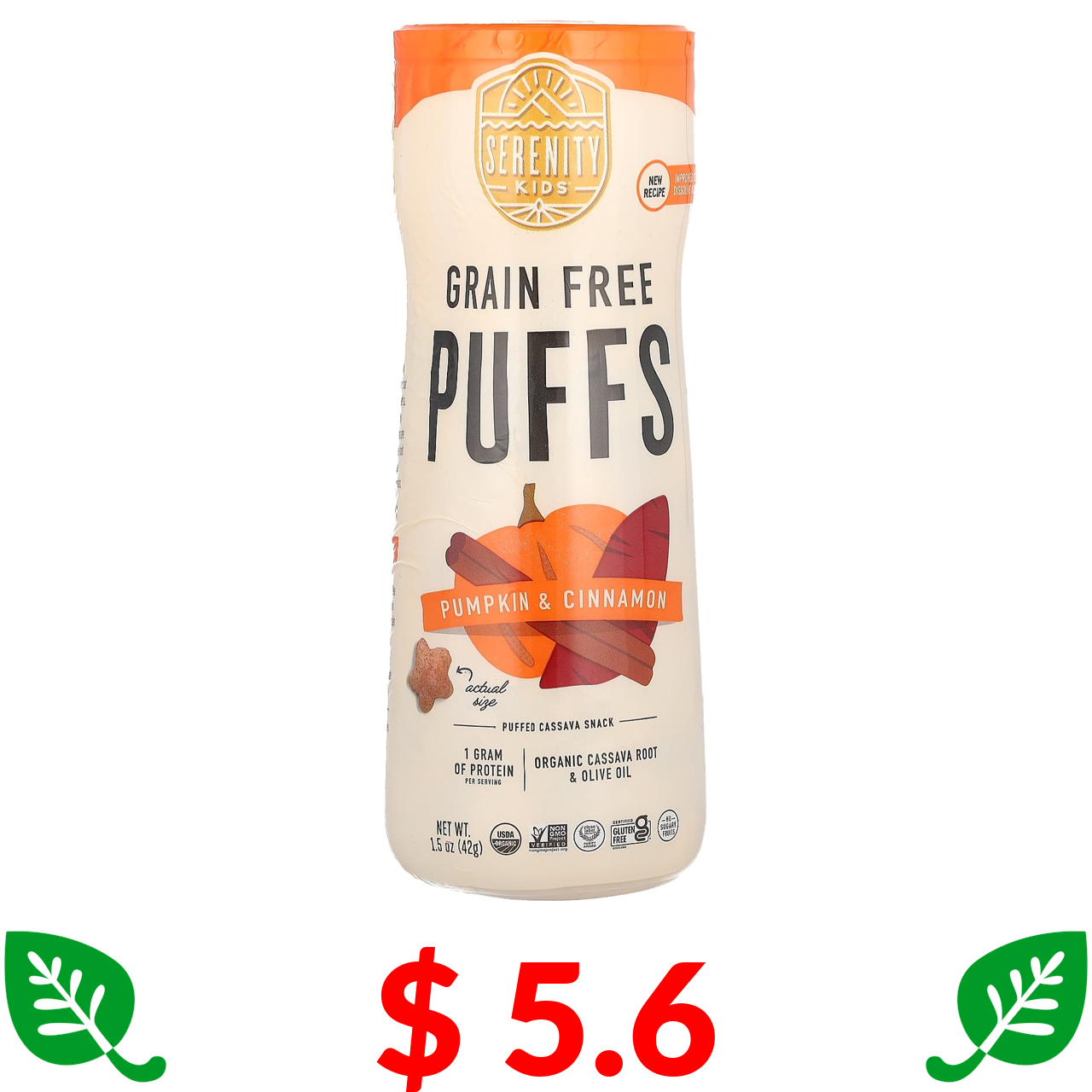 $ 5.6 Serenity Kids, беззернові слойки, гарбуз і кориця, 43 г (1,5 унції)