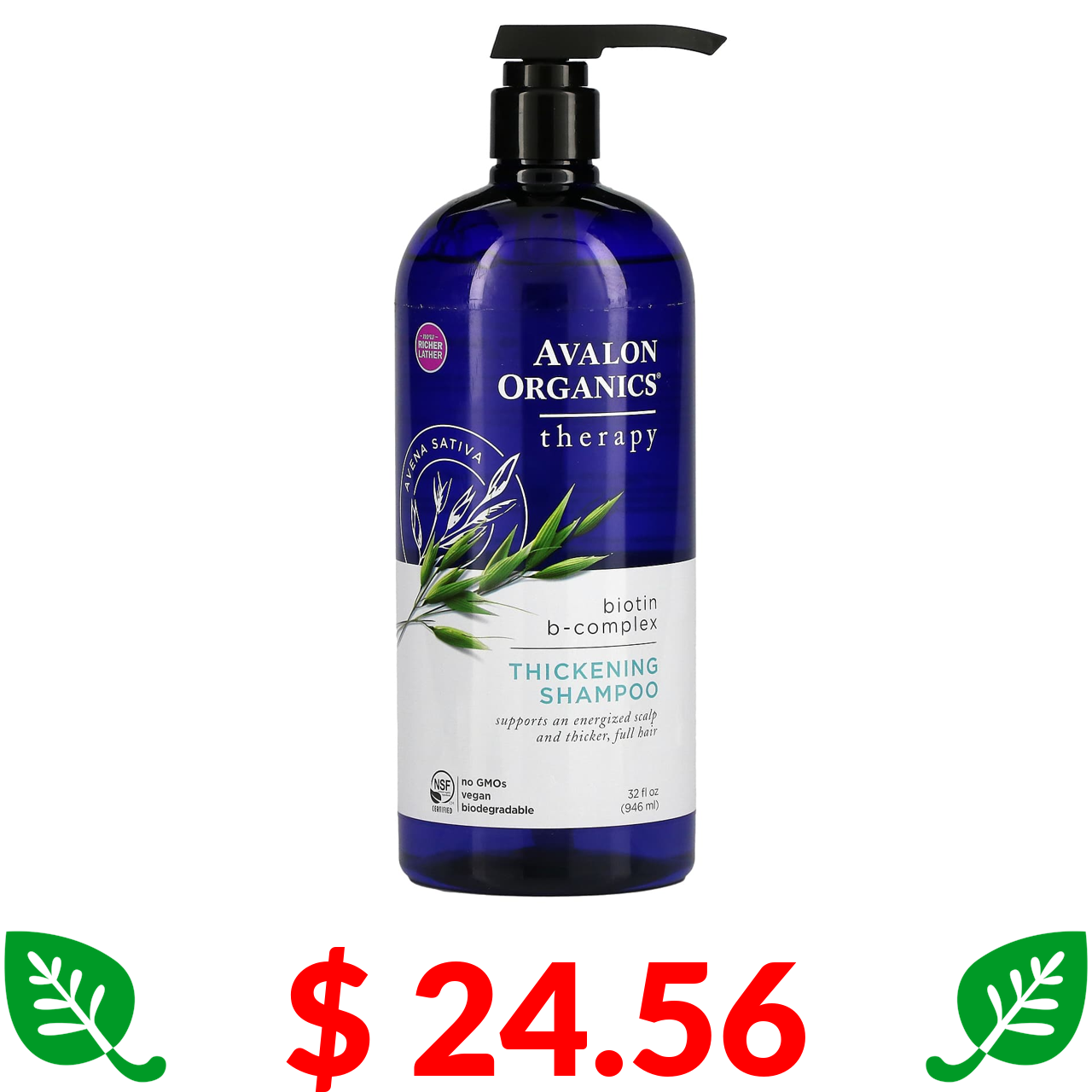 $ 24.56 Avalon Organics, шампунь для густоти волосся, з біотином і комплексом вітамінів групи В, 946 мл (32 рідк. унції)