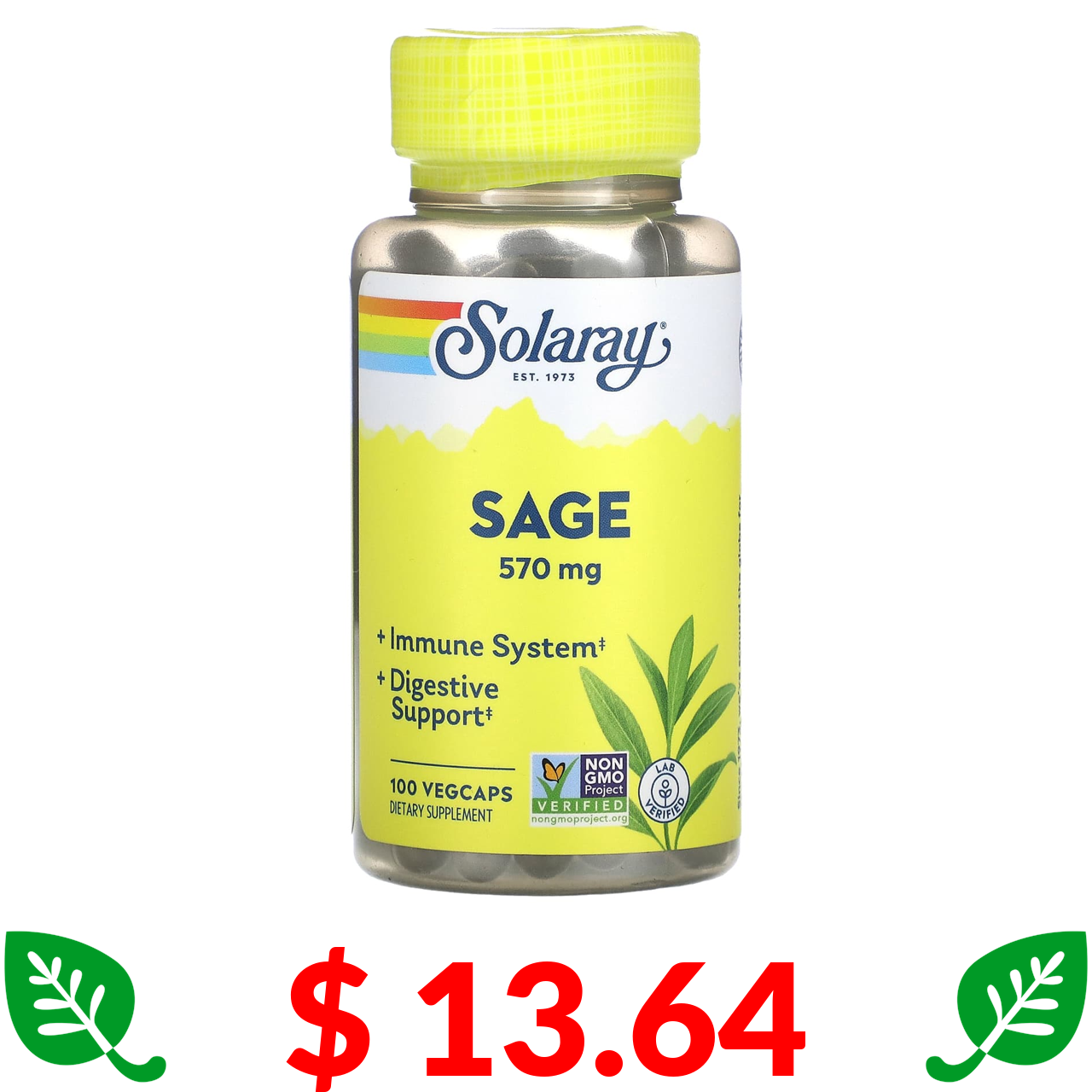 $ 13.64 Solaray, Шавлія, 285 мг, 100 капсул Veg
