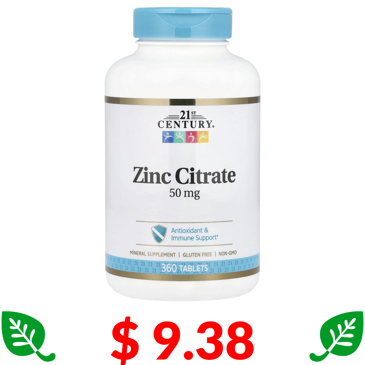$ 9.38 21st Century, цитрат цинку, 50 мг, 360 таблеток