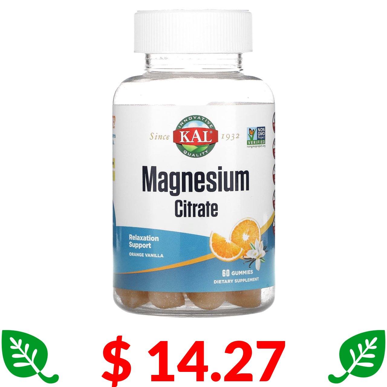$ 14.27 KAL, цитрат магнію, смак ванілі, 60 жувальних таблеток