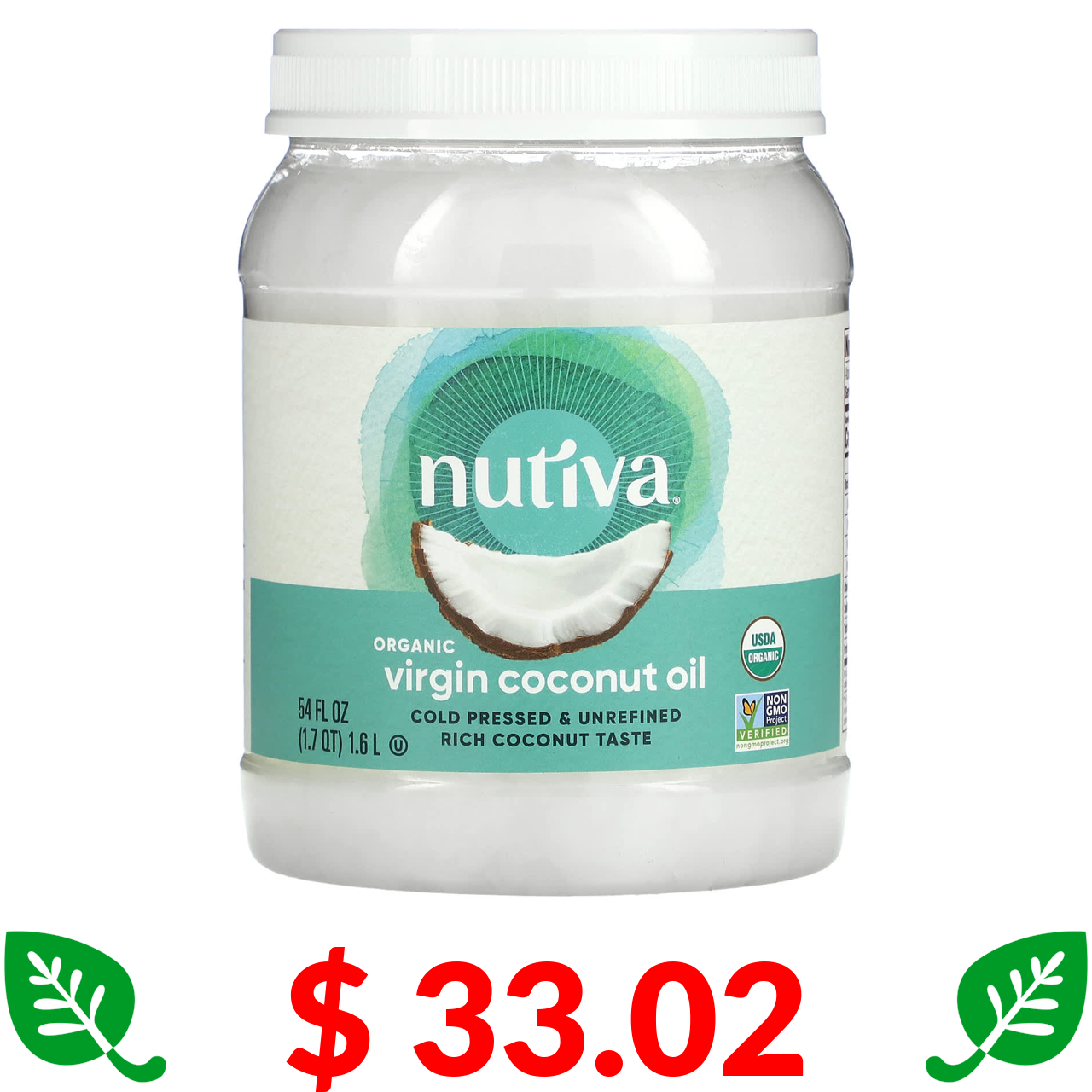 $ 33.02 Nutiva, органічна кокосова олія, перший віджим, 1,6 л (54 рідк. унції)