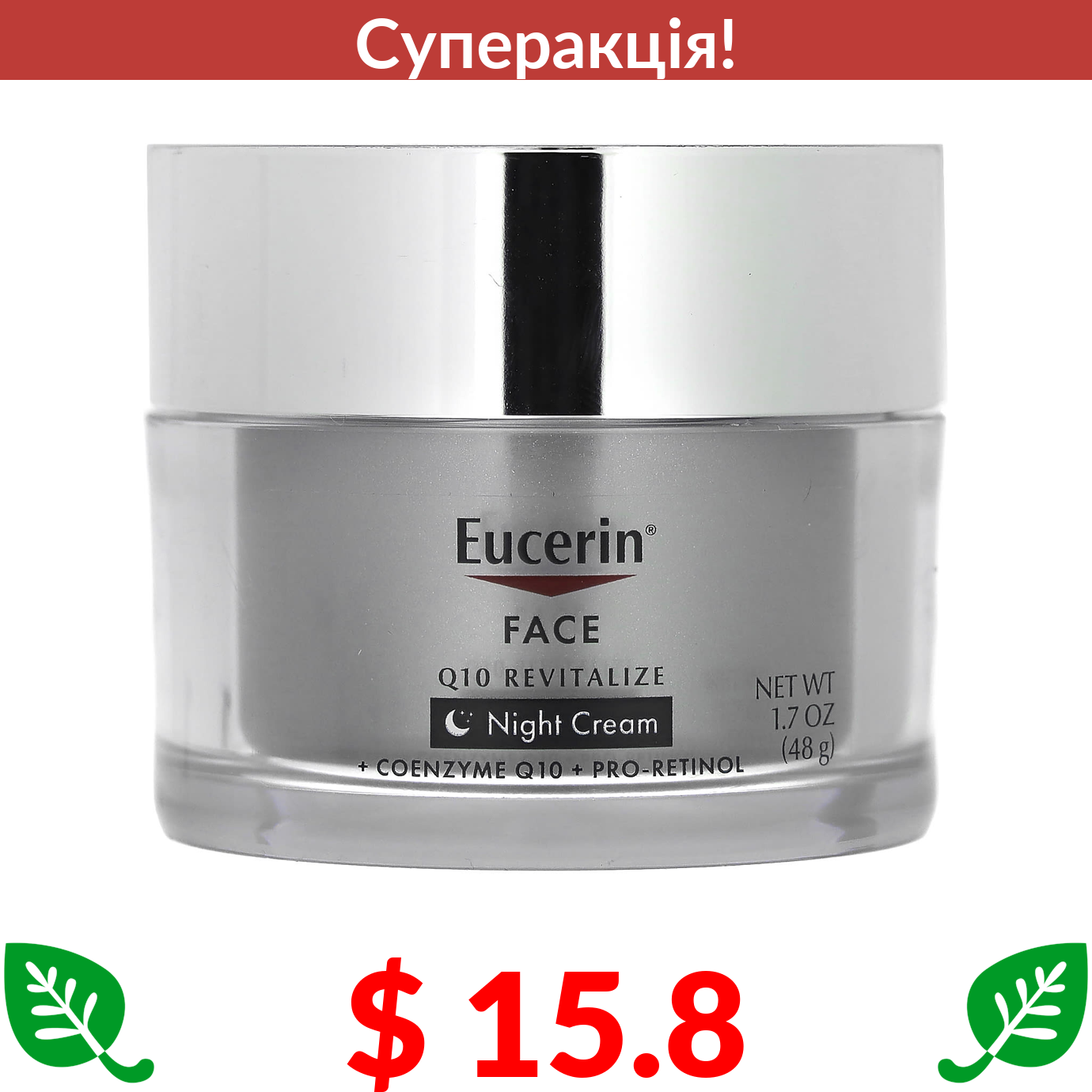 $ 15.8 Eucerin, нічний крем для обличчя, Q10 Revitalize, без ароматизаторів, 48 г (1,7 рідк. унції)