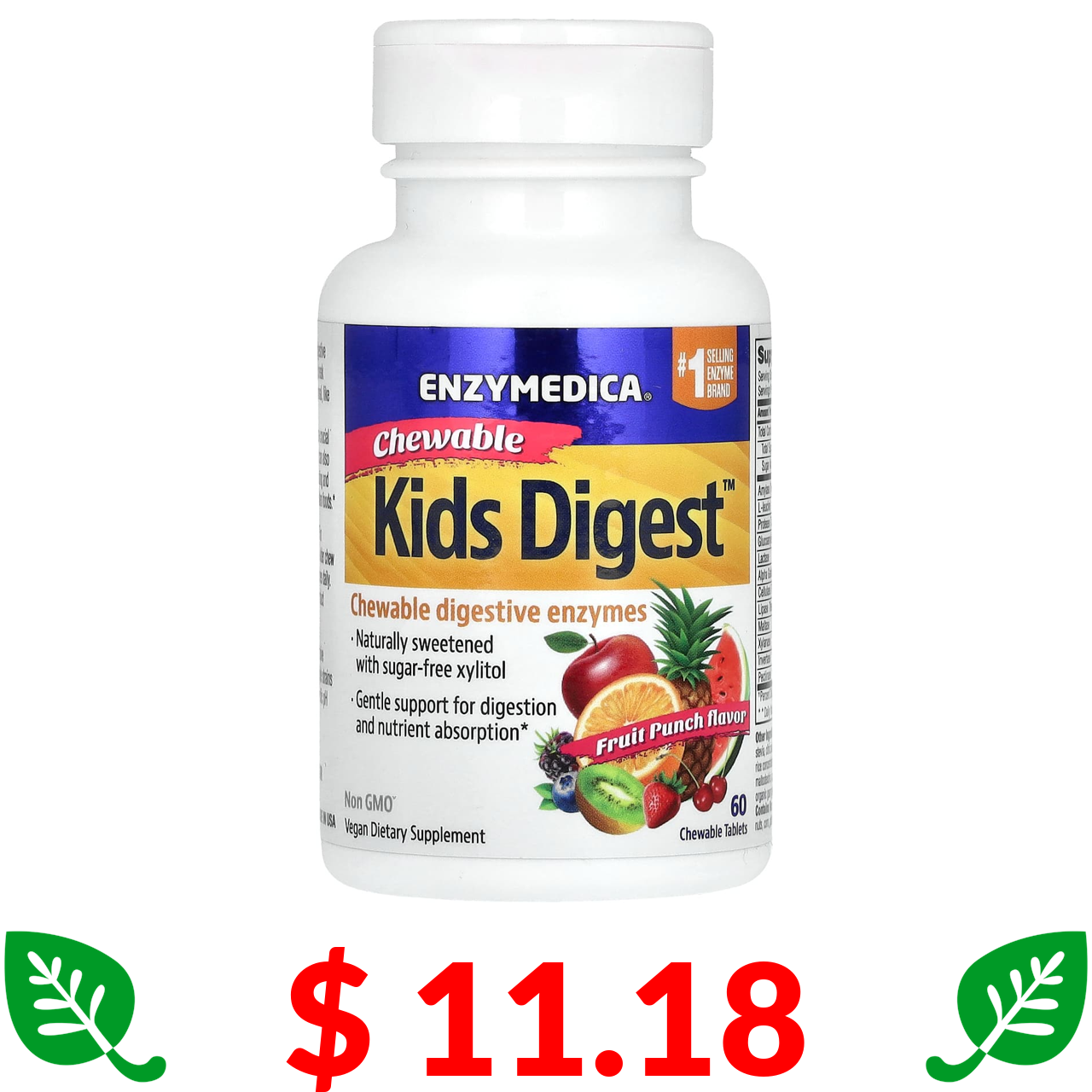 $ 11.18 Enzymedica, Kids Digest, добавка для підтримки травлення, зі смаком фруктового пуншу, 60 жувальних таблеток