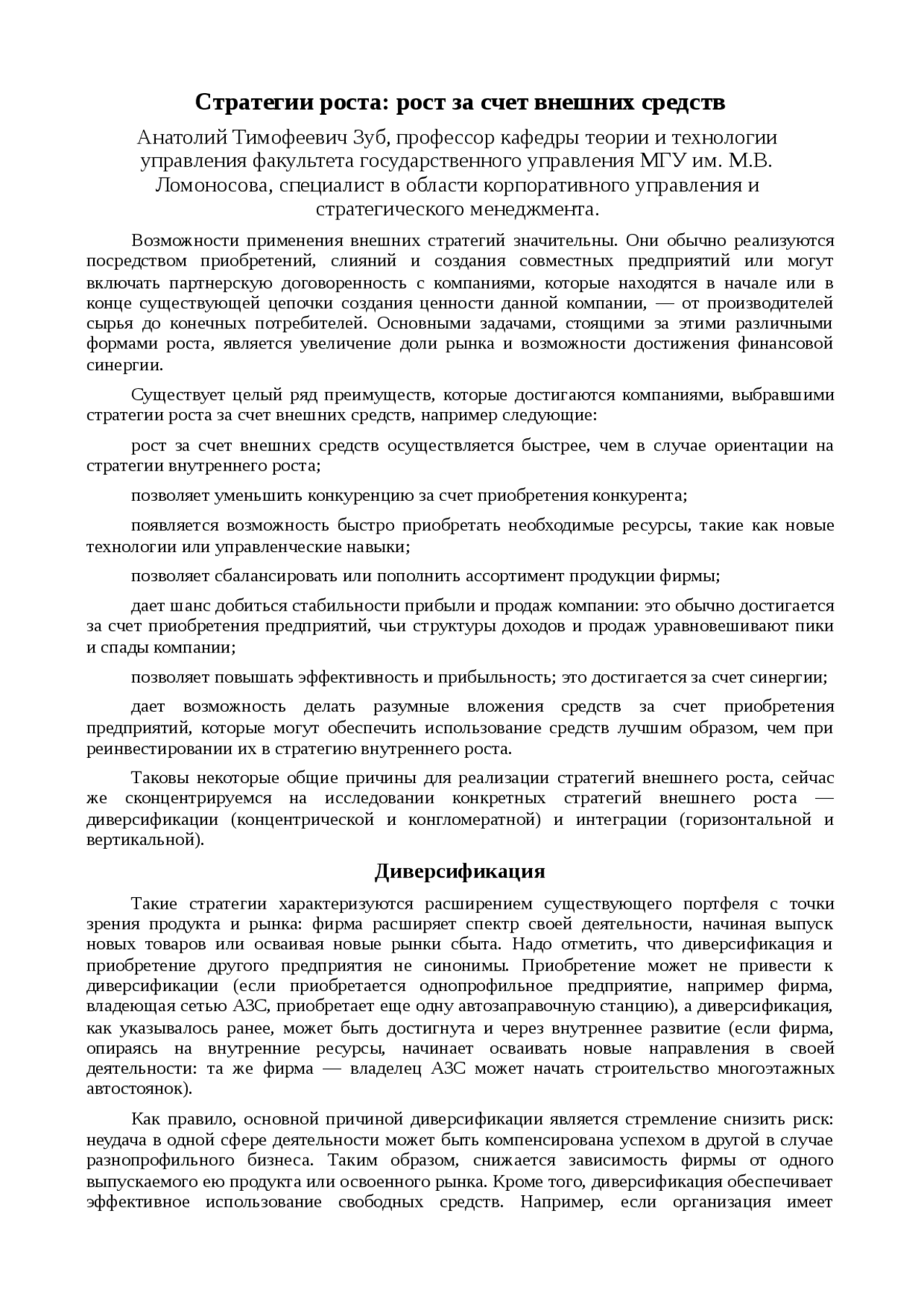 из стратегии роста