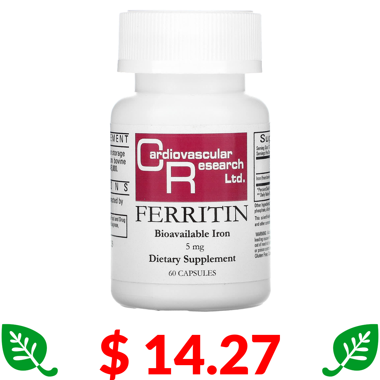 $ 14.27 Кардиоваскуляр Ресерч, ферритин, 5 мг, 60 капсул