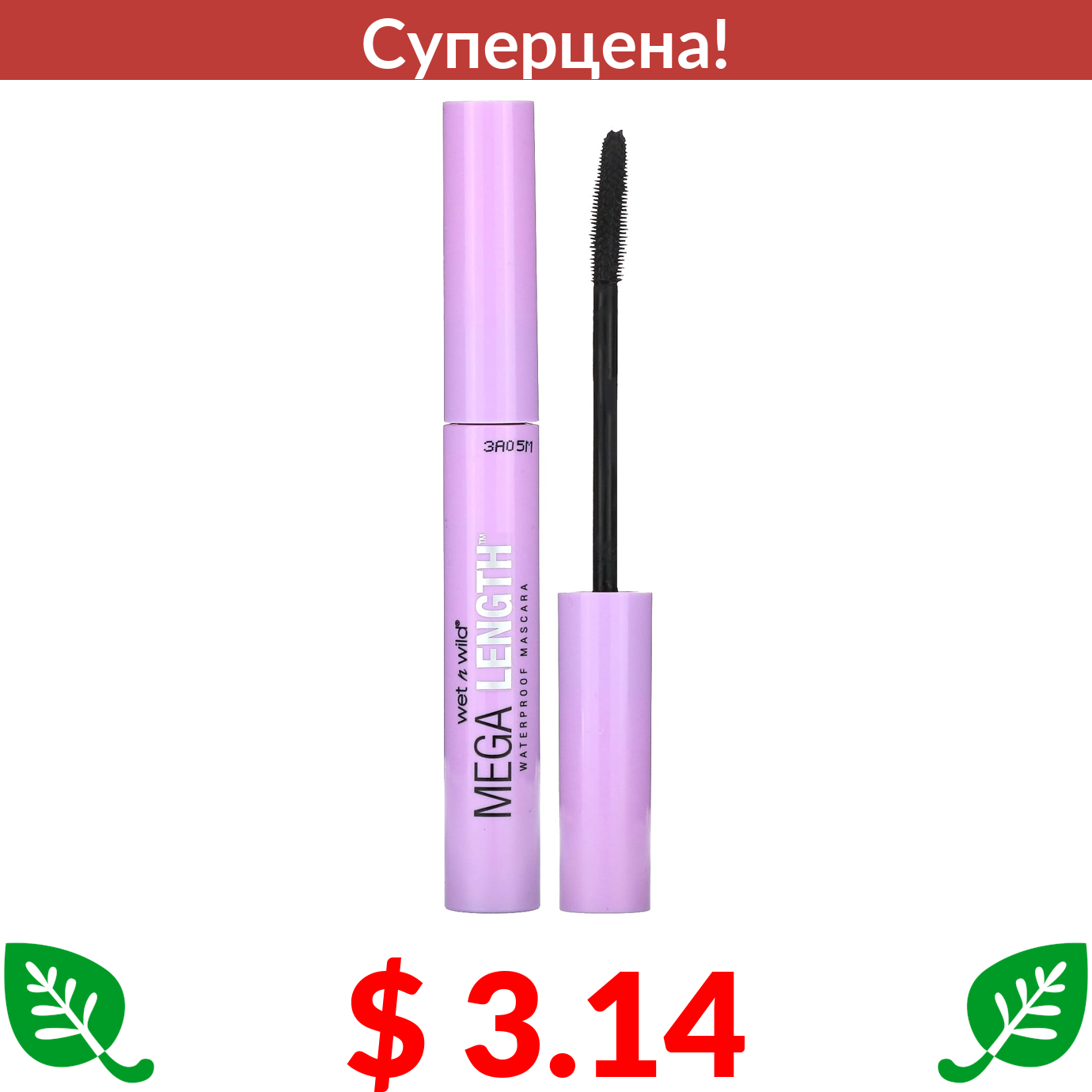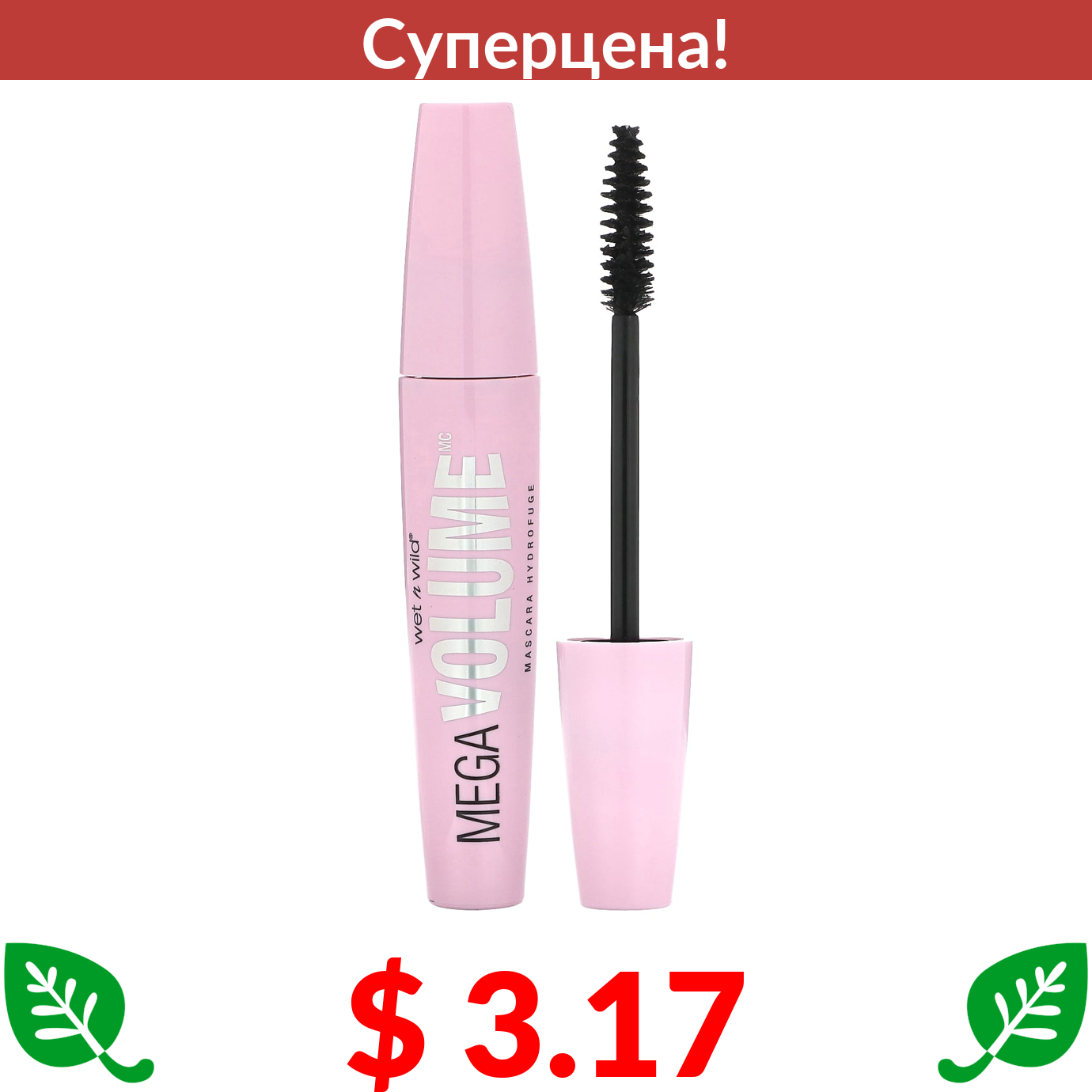 $ 3.17 wet n wild, Водостойкая тушь для ресниц Mega Volume, черная, 6 мл (0,21 жидк. Унции)
