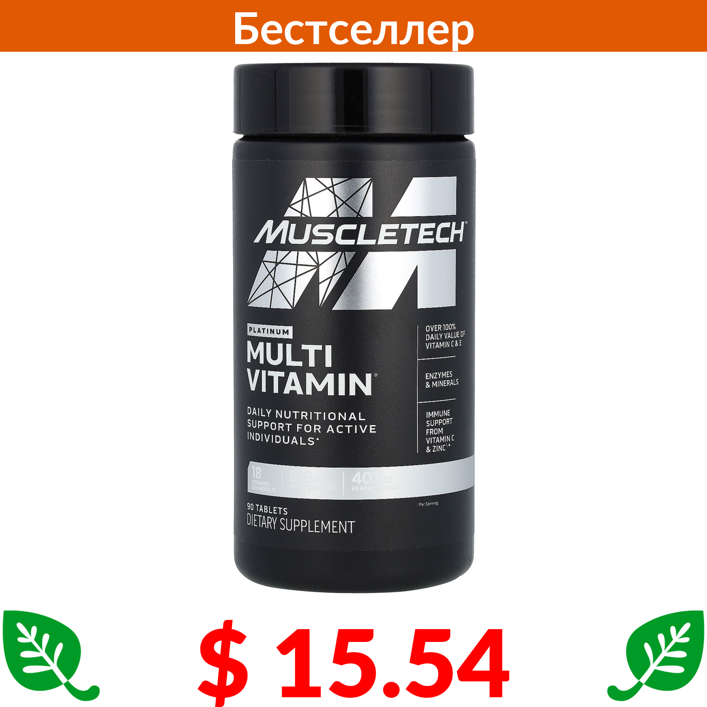 $ 15.54 MuscleTech, Platinum Multivitamin, мультивитамины, 90 таблеток