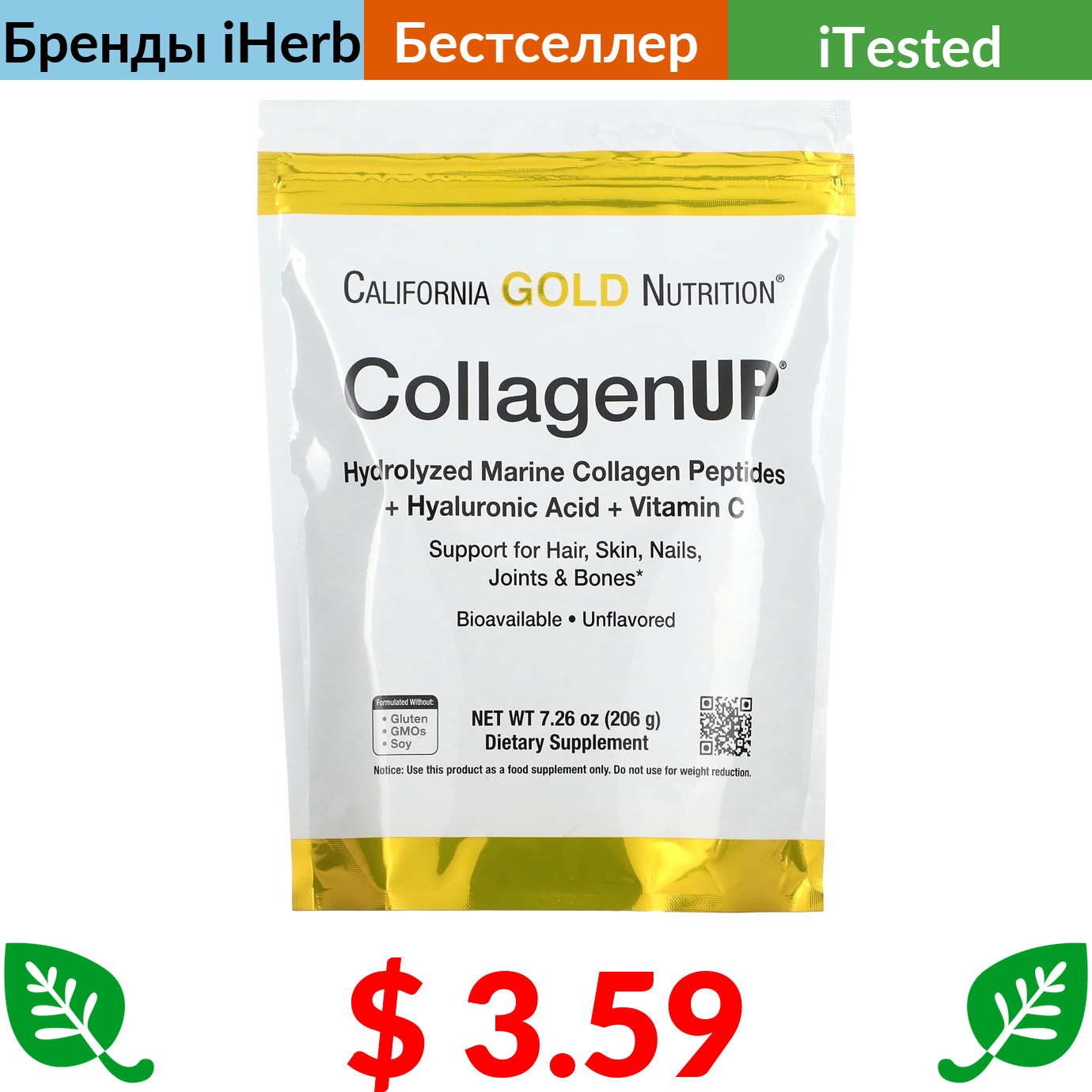 $ 2.78 California Gold Nutrition, Gold C, витамин C класса USP, 1000 мг, 60 вегетарианских капсул