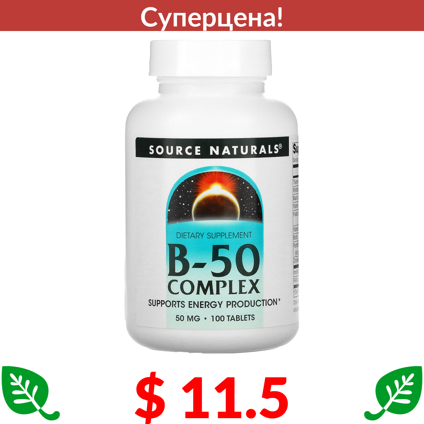 $ 11.5 Source Naturals, комплекс B-50, 50 мг, 100 таблеток