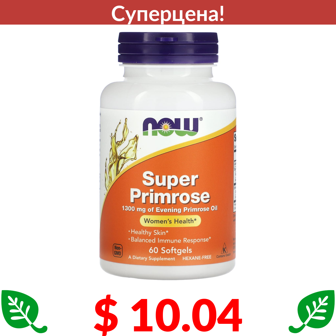 $ 10.04 Now Foods, Super Primrose, масло примулы, 1300 мг, 60 капсул
