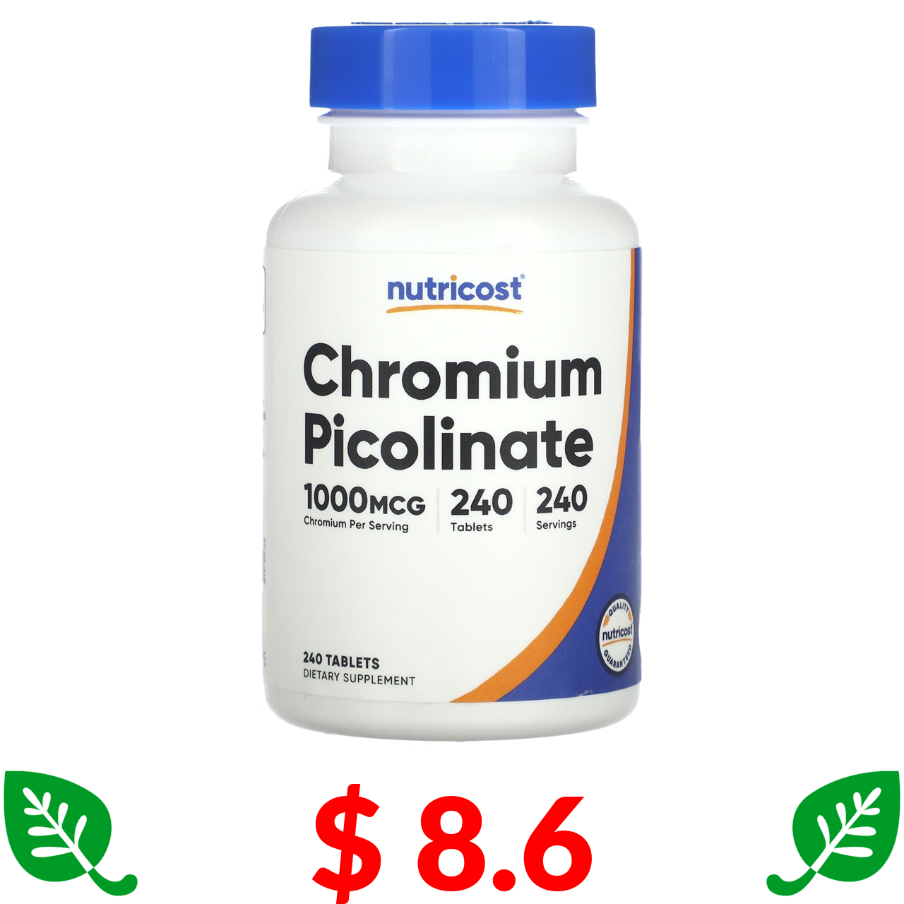 $ 8.6 Nutricost, Пиколинат хрома, 1000 мкг, 240 таблеток