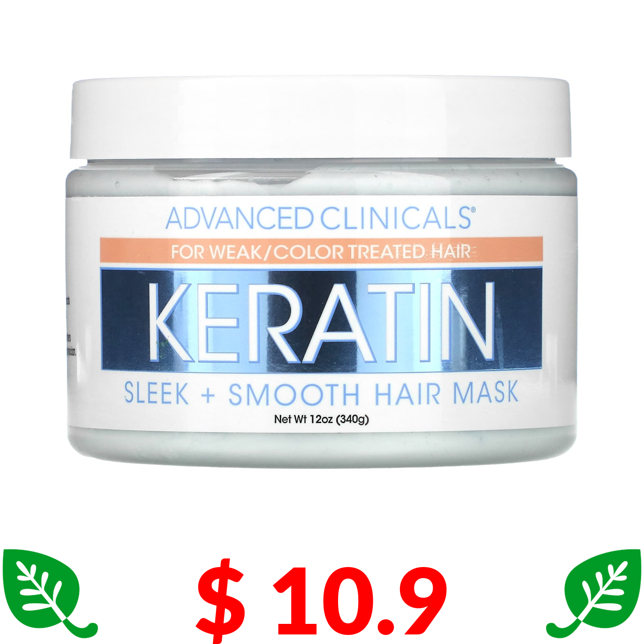 $ 10.9 Advanced Clinicals, маска с кератином для гладкости волос, 340 г (12 унций)