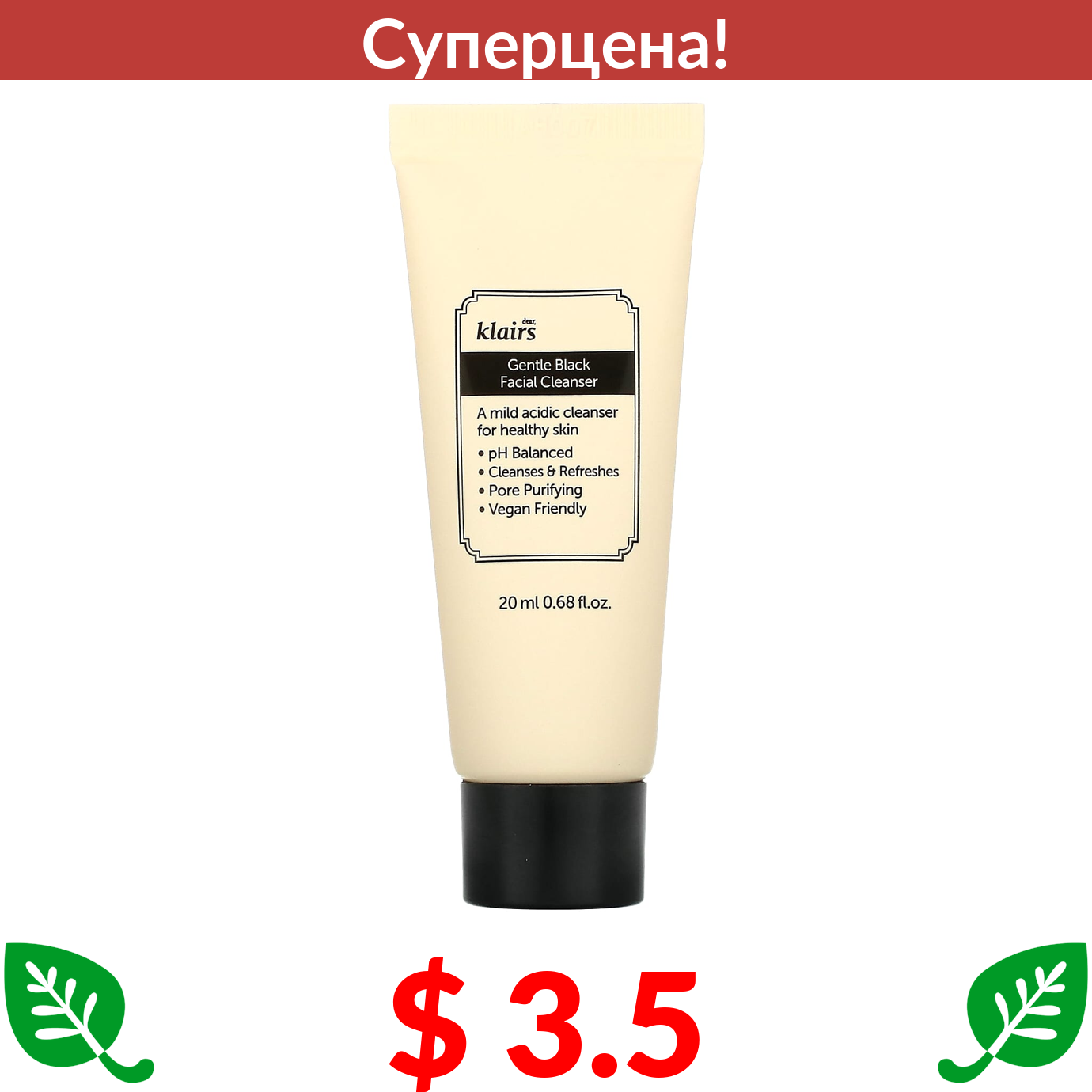 $ 3.5 Диа Клерс, Нежное очищающее средство для лица, черное, 20 мл (0,68 жидк. Унции)