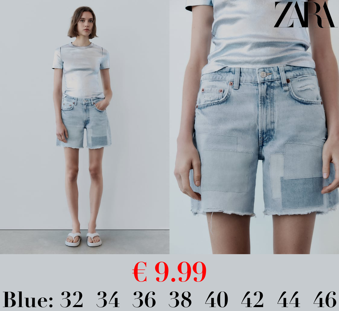€ 9.99 TRF MID-RISE DENIM BERMUDA SHORTS WITH PATCHES