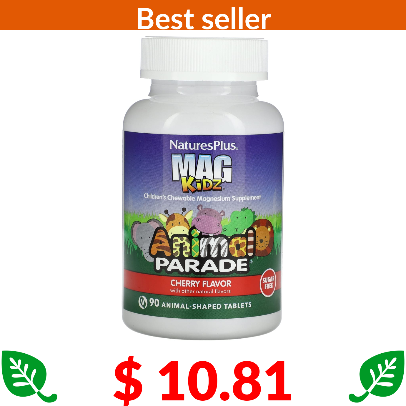 $ 10.81 NaturesPlus, MagKidz, Animal Parade, Children's Chewable Magnesium, Cherry, 90 Animal-Shaped Tablets