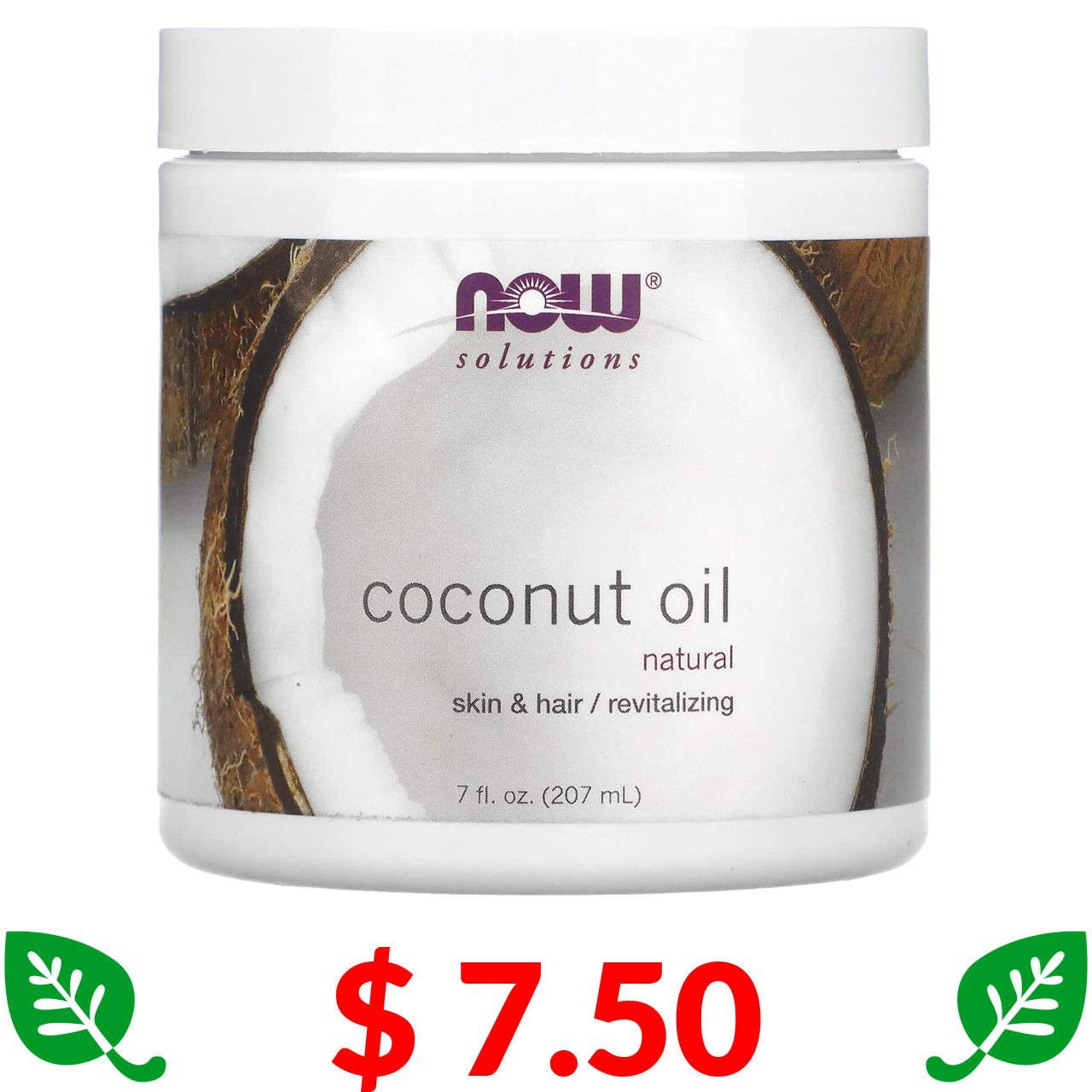 $ 7.50 NOW Foods, Solutions, Coconut Oil, Natural, 7 fl oz (207 ml)