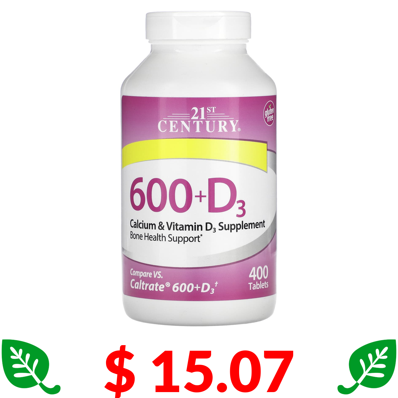 $ 15.07 21st Century, 600+D3, Calcium & Vitamin D3 Supplement, 400 Tablets