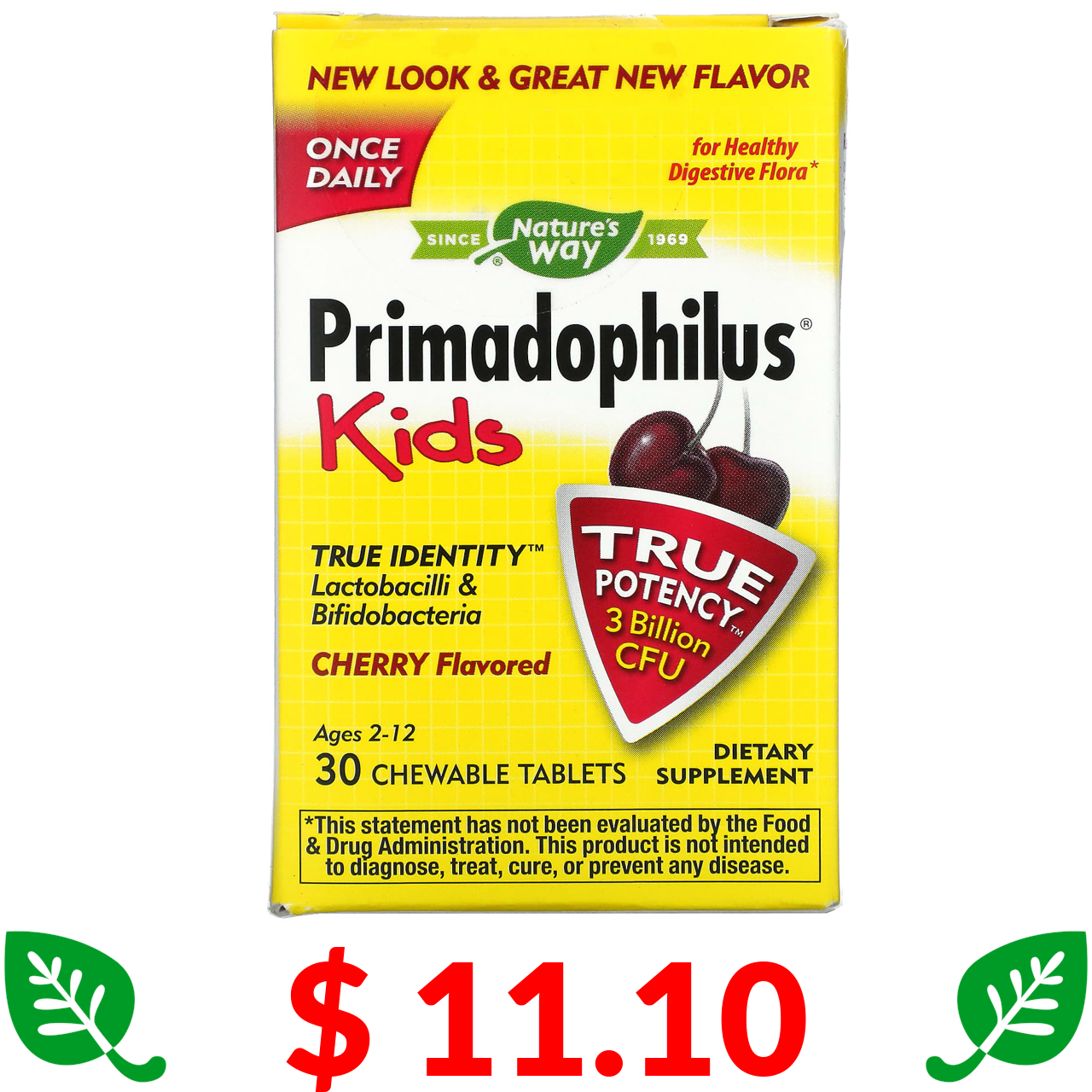 $ 11.10 Nature's Way, Primadophilus, Kids, Age 2-12, Cherry , 3 Billion CFU, 30 Chewable Tablets