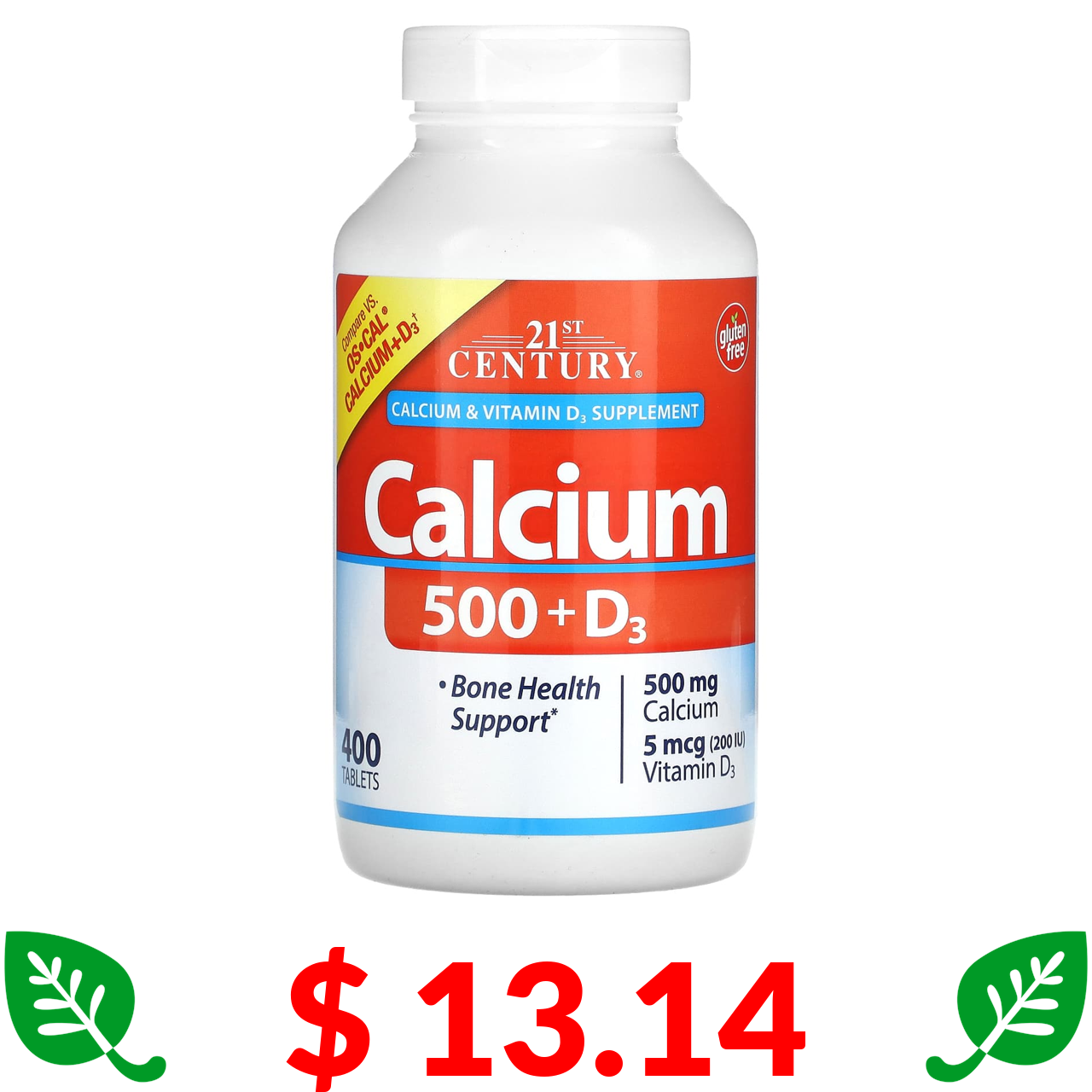 $ 13.14 21st Century, Calcium 500 + D3, 400 Tablets