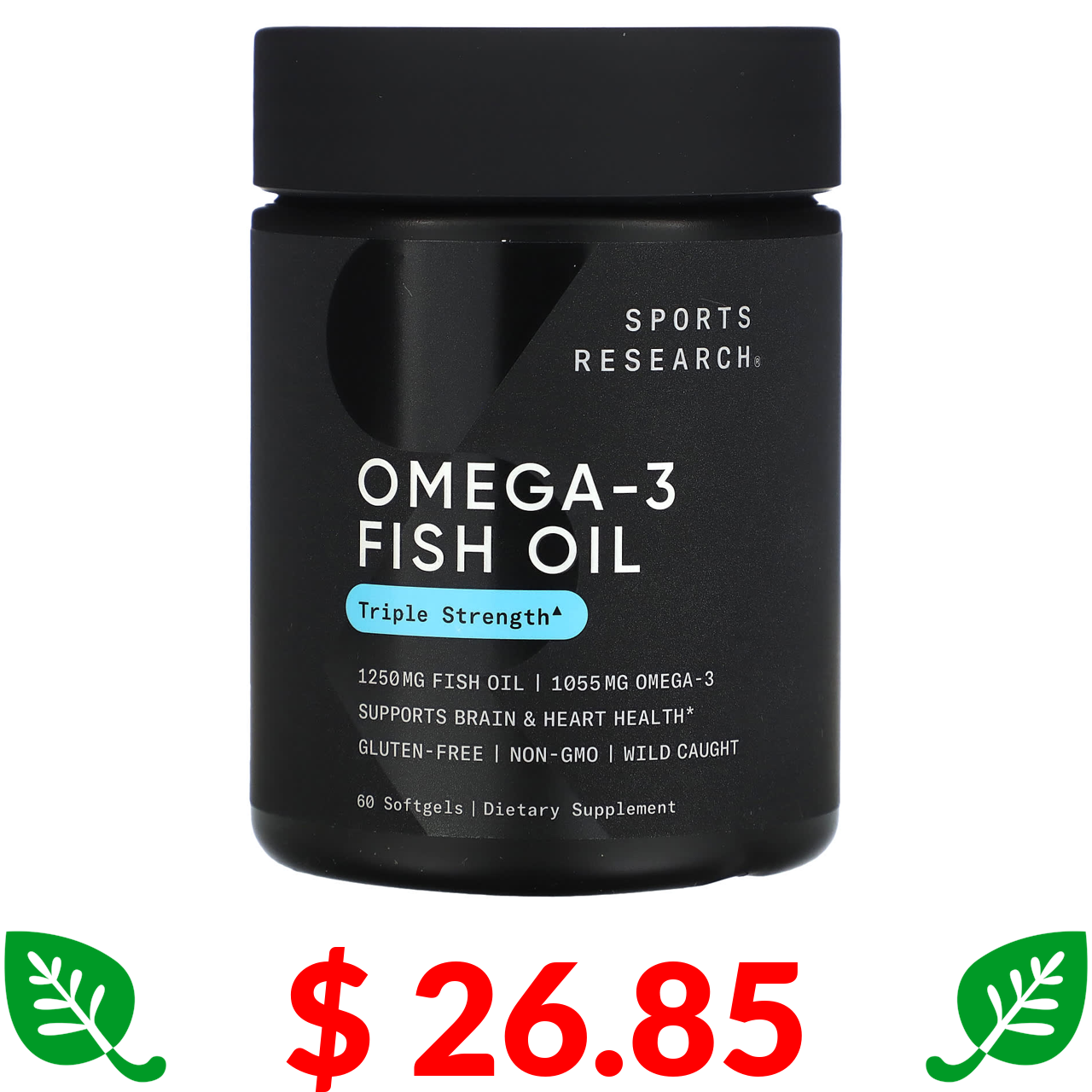 $ 26.85 Sports Research, Omega-3 Fish Oil, Triple Strength, 60 Softgels