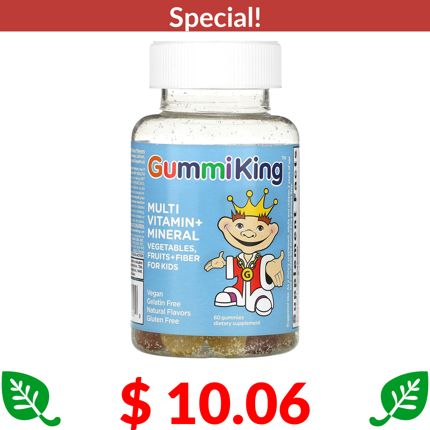 $ 10.06 GummiKing, Multi Vitamin + Mineral, Vegetables, Fruits + Fiber For Kids, 60 Gummies