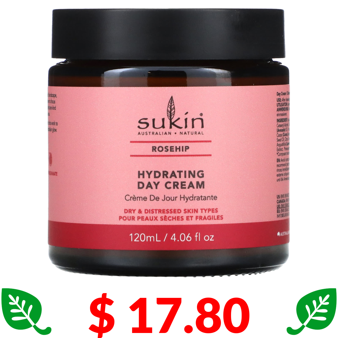 $ 17.80 Sukin, Hydrating Day Cream, Rosehip, 4.06 fl oz (120 ml)