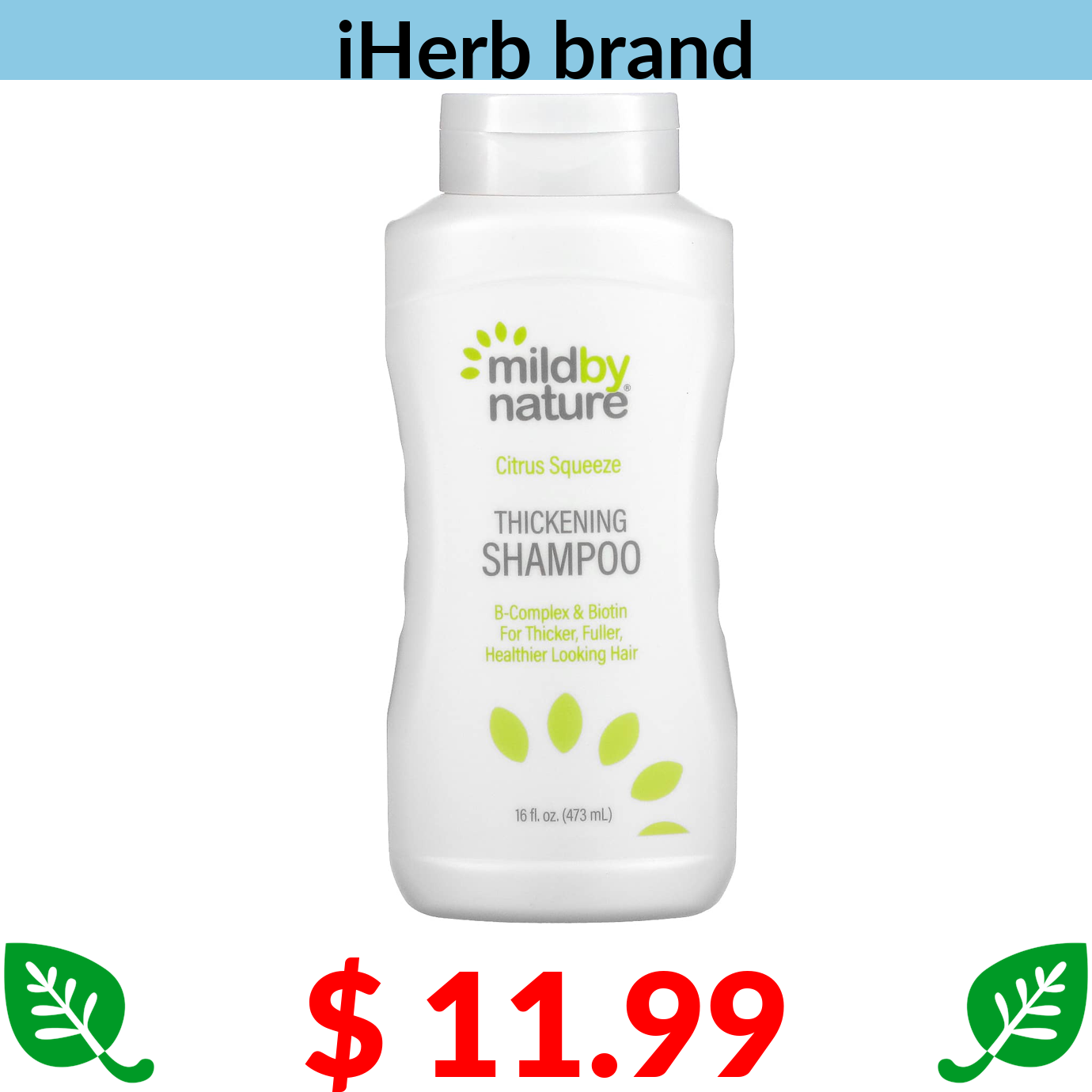 $ 11.99 Mild By Nature, Thickening B-Complex + Biotin Shampoo, No Sulfates, Citrus Squeeze, 16 fl oz (473 ml)