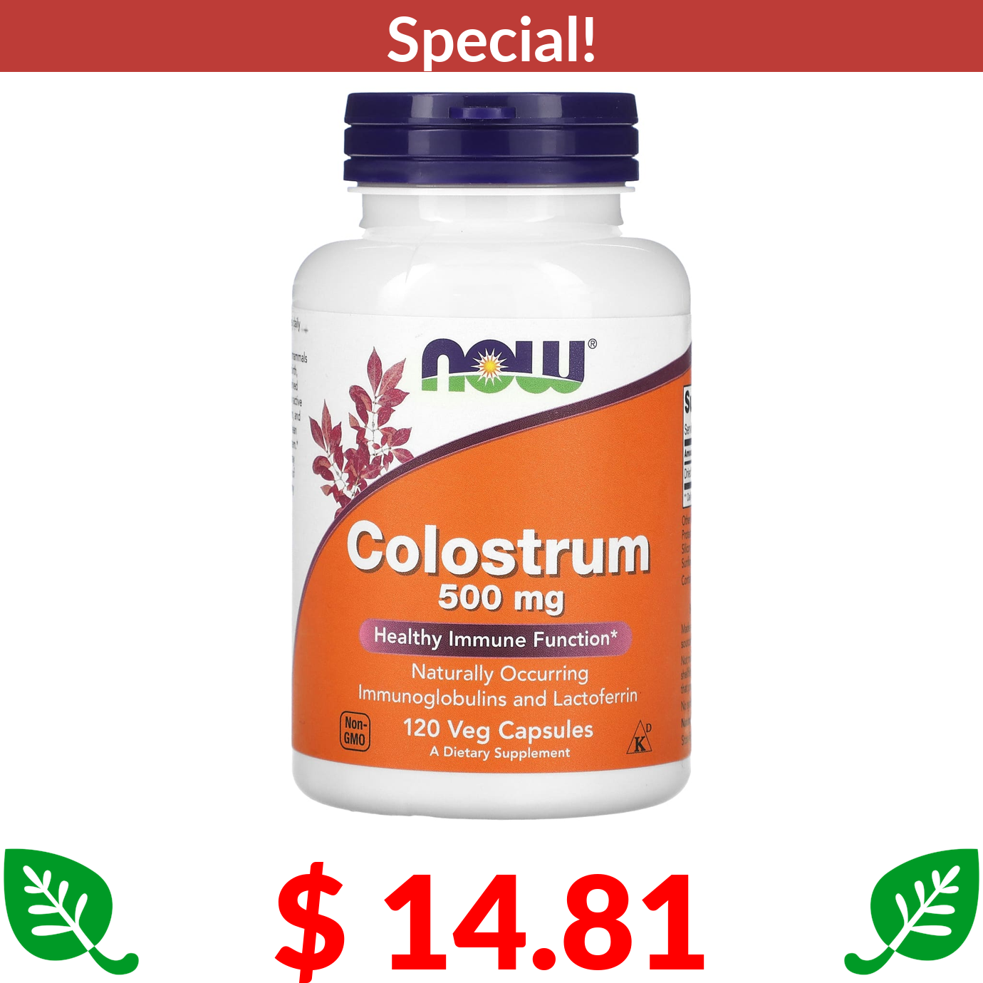 $ 14.81 NOW Foods, Colostrum, 500 mg, 120 Veg Capsules