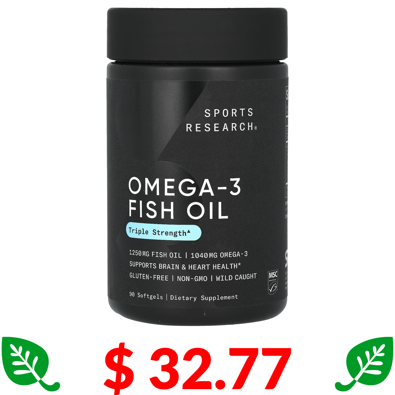 $ 32.77 Sports Research, Omega-3 Fish Oil, Triple Strength, 90 Softgels