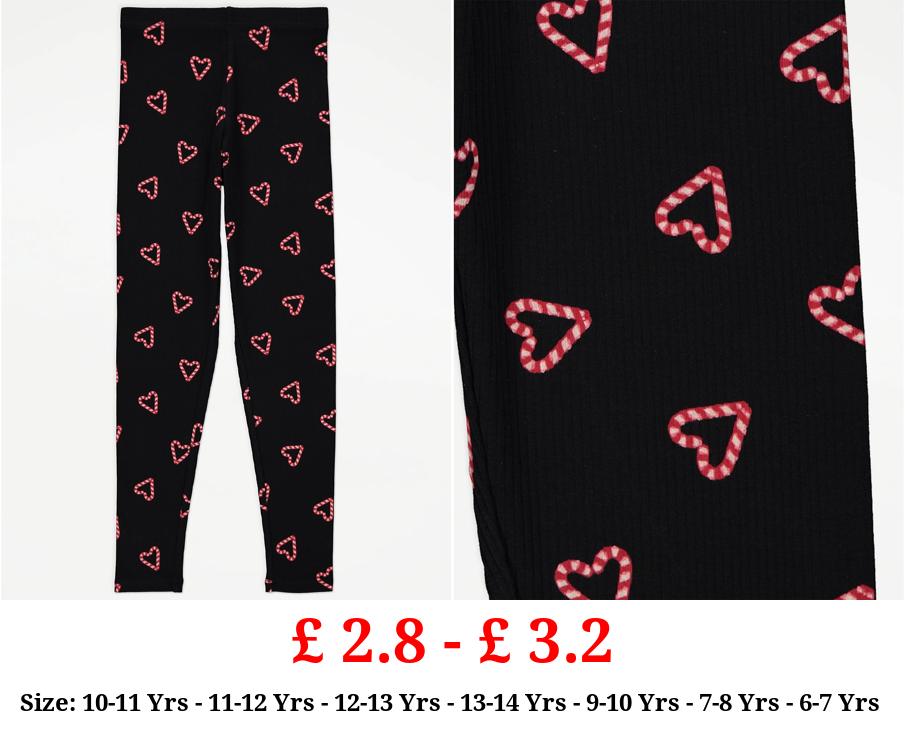£ 2.8 - £ 3.2 Black Candy Cane Heart Print Leggings