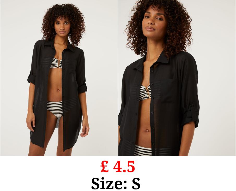 £ 4.5 Black Button Up Longline Beach Shirt