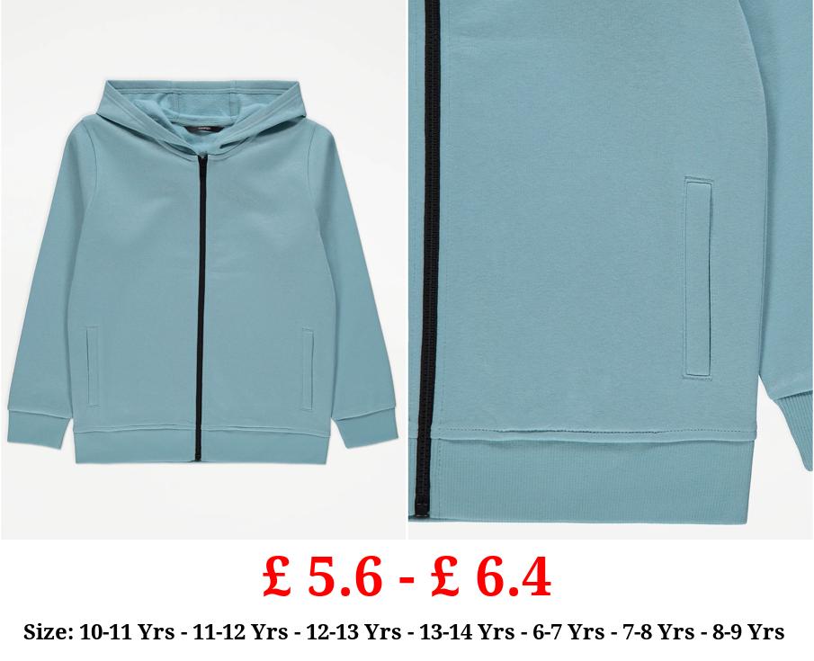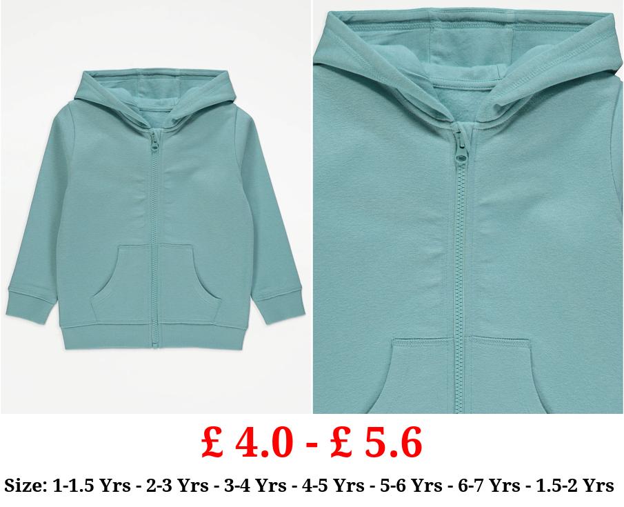£ 4.0 - £ 5.6 Turquoise Plain Zip Up Hoodie